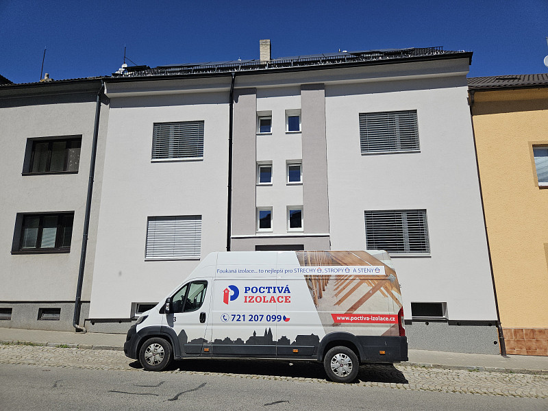 V půli srpna 2025 zateplila Poctivá izolace dutiny u štítové zdi v rodinném domě v Jihlavě. Dům se sedlovou střechou v řadové zástavbě procházel rekonstrukcí pro energetické úspory domu. Veškeré práce již byly hotové, nicméně se našla místa v krovu, kde nebylo možné použít klasickou izolaci v rolích. Proto nás investor oslovil pro vyplnění dutin jinak nepřístupných, mezi krokvemi a štítovou zdí. Jako materiál byla zvolena skelná minerální izolace Ursa Pure floc, kterou náš profi tým proškolených pracovníků nafoukal do dutiny pod prkenné bednění střechy a do dutiny podél.