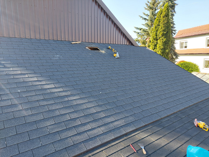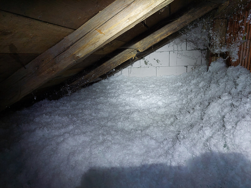 V půli května zateplila Poctivá izolace dvouplášťovou střechu s vyšším sklonem ve Vepřové. Rodinný dům po rekonstrukci střechy, kde byla vyměněna stará plechová krytina za novou stávající nad hlavní částí domu, byla již zateplena. Navazující nižší střecha zateplena nebyla, jelikož nebyl do podstřeší přístup. Jednalo se o střechu bez odvětrávání, proto bylo potřeba myslet i na to. Do nejvyššího místa střechy jsme vytvořili otvor jak pro nafoukání minerální nehořlavé izolace, tak i pro osazení střechy ventilační hlavicí pro výměnu vzduchu v tomto podstřešním prostoru. Na plochu o necelých 20 m2 náš profi tým proškolených pracovníků nafoukal 30 cm vysokou izolační vrstvu s náběhem na svislou zděnou konstrukci. Jako materiál byla zvolena skelná minerální izolace Supafil loft PRO od společnosti Knauf. Vznikla tak nová plně funkční izolační vrstva s odvětráváním uzavřené části střechy.