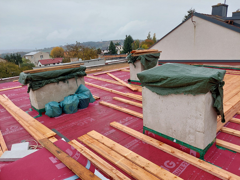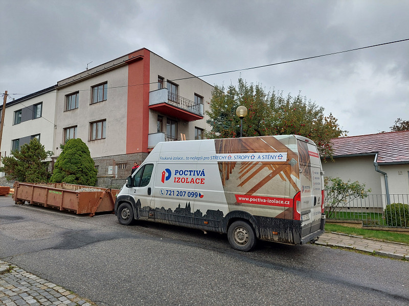 Poctivá izolace zateplila strop pod pultovou střechou rodinného domu v Jihlavě. Patrový rodinný dům právě procházel rekonstrukcí ploché střechy, kdy byla odstraněna původní krytina z falcovaného plechu, vyměněny dřevěné prvky krovu jako trámy a prkenný záklop, byla položena střešní fólie a před samotným zaklopením bylo potřeba nafoukat izolaci z kamenné vlny. Vše tedy probíhalo v součinnosti se střechaři. Na celkovou plochu asi 90 m2 bylo tedy třeba zhotovit novou vrstvu izolace. Jako materiál byla zvolena minerální čedičová izolace Paroc BLT9 od společnosti Paroc, kterou náš profi tým proškolených pracovníků nafoukal na lepenkovou izolaci v podstřeší ve vrstvě vysoké 40 cm. Vznikla tak nová plně funkční izolační vrstva bez jakýchkoliv tepelných mostů, která zajistí dokonalý tepelný komfort v domě po celý rok. Jelikož se jednalo o střechu plochou, bylo potřeba též dávat pozor, aby byla střecha nadále odvětrávána pomocí mřížek v atice, a tyto odvětrávací místa nechat průchozí k odvětrání.