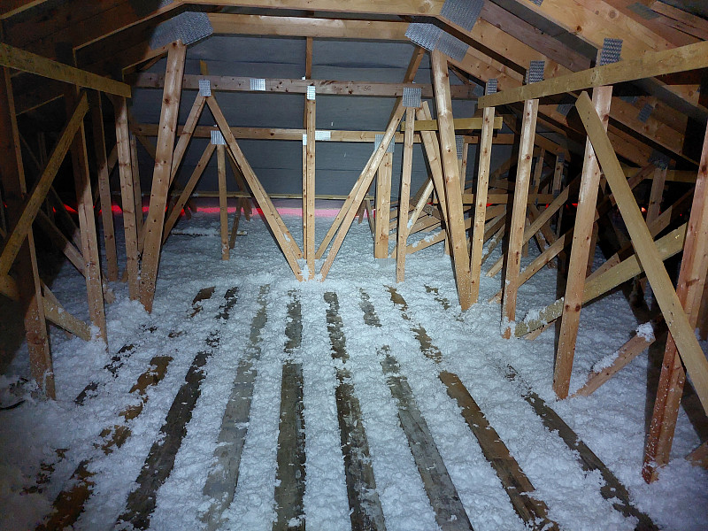 Izolace rodinného domu, respektive novostavby typu bungalov s valbovou střechou z příhradových sbíjených vazníků technologií foukané izolace v Kojetíně Poctivá izolace zrealizovala v květnu 2022. Zateplení stropu rodinného domu o celkové zastavěné ploše 230 m2 Poctivá izolace provedla za 1 den. Foukaná izolace nebo také často také označovaná jako foukaná vata vytvoří na stropě souvislou vrstvu bez tepelných mostů i v těch nejkomplikovanějších konstrukcích a vytvoří tak izolační pokličku pro ideální tepelný komfort v létě i v zimě, a to bez jakýchkoliv tepelných mostů. Poctivá izolace na zateplení stropu novostavby v Kojetíněí použila nejčastěji používanou foukanou vatu od Knauf Insulation s názvem Supafil.