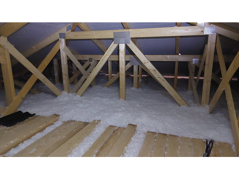 Pro novostavby bungalovu je typická vazníková konstrukce a lehké SDK stropy. Pro jejich zateplení je technologie foukané izolace tím nejlepším řešení. Izolační materiál se pomocí foukacích strojů dostane i do těch nejhůře přístupných míst a na stropě domu tak vznikne celistvá dokonalá izolační vrstva bez jakýchkoliv tepelných mostů. Na strop rodinného domu v Rumburku nafoukal náš tým pracovníků Poctivé izolace materiál Supafil loft od společnosti Knauf. Ideální volba na lehký SDK strop, který nebude díky nízké objemové hmotnosti Supafilu nijak přetížen. Supafil je navíc prodyšný, nesléhává, zcela zdravotně nezávadný a nehořlavý. Zakázku zateplení stropu novostavby v Rumburku zrealizovala Poctivá izolace v rámci služby zateplení subdodavatelsky. Jedná se o oboustranně výhodnou spolupráci, která je vhodná jak pro větší stavební firmy, tak i pro menší řemeslníky a dřevostavitele. Díky Poctivé izolaci tak ušetříte čas, pracovní sílu i peníze. Poptejte si nás.