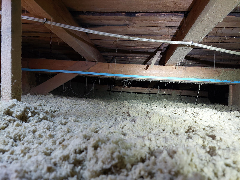 První zářijový den roku 2022 zrealizovala Poctivá izolace zateplení stropu stávajícího rodinného domu s pultovou střechou v Klatovech. Stávající skladba byla tvořena 20cm vrstvou expandovaného polystyrenu a 15cm nesouvislou vrstvou skelné vaty. Tato skladba zůstala zachována. Jako materiál byl v tomto případě použit Climastone S, tedy čedičová izolace, kterou náš proškolený tým pracovníků nafoukal ve vrstvě 15 cm. Zatepleno bylo během chvilky. Šetřete už tuto zimu i Vy a zateplete si strop co nejdříve. S Poctivou izolací je to hračka.
