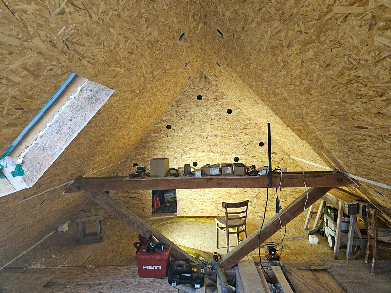 Ke konci ledna zateplila Poctivá izolace stávající rodinný dům v Rozsochatci. Patrový dům s obytným podkrovím disponoval sedlovou střechou s plechovou krytinou na prkenném podbití se střešní fólií, s nadkrokevní izolací Pavatex 100 mm. Majitel se rozhodl pro zateplení půdy nad podkrovím, a to konkrétně zateplení šikmin a štítové stěny. Aby zateplení šikmin mělo smysl pro úsporu tepla, bylo potřeba prostavit krokve pomocí příložek z OSB pro zvětšení dutiny a zároveň vytvoření komor, kdy se záklop vytvořil z OSB desek, které tvoří parobrzdu. U hřebene se též přepažilo tak, aby se při uzavřených komorách izolace „nepřelévala“ z jedné části do druhé. Kolem střešního okna se řádně vyvatovalo a mezery utěsnily pěnou. Jakmile bylo připraveno k izolování, náš profi tým proškolených pracovníků vykroužil do každé připravené komory otvor, kterým nahutnil izolaci v objemu daném výrobcem izolace a následně otvor uzavřel pomocí speciální pásky. Na celkové ploše střechy nad podkrovím asi 57 m2 bylo tedy třeba vyplnit komory v tloušťce 24 cm. Jako materiál byla zvolena dřevovláknitá izolace Steico zell od společnosti Steico. Vznikla tak nová plně funkční izolační vrstva bez jakýchkoliv tepelných mostů, která zajistí dokonalý tepelný komfort v domě po celý rok.