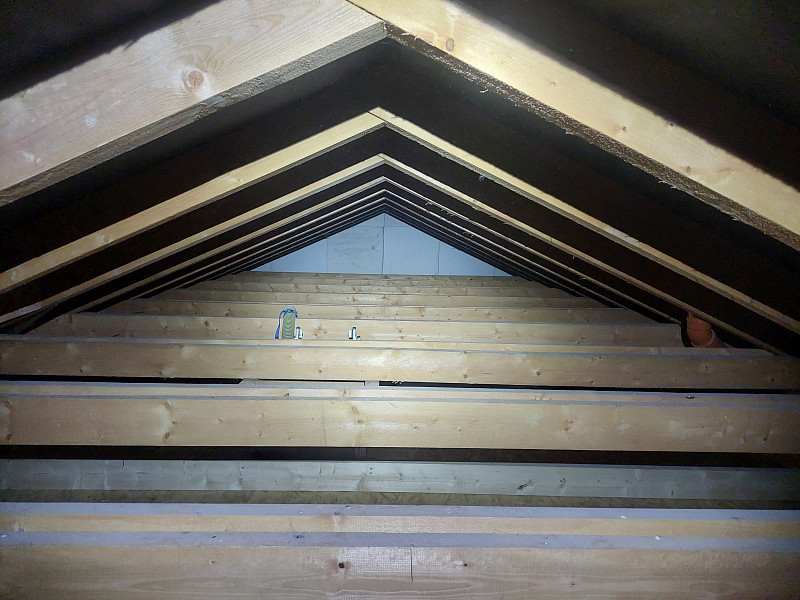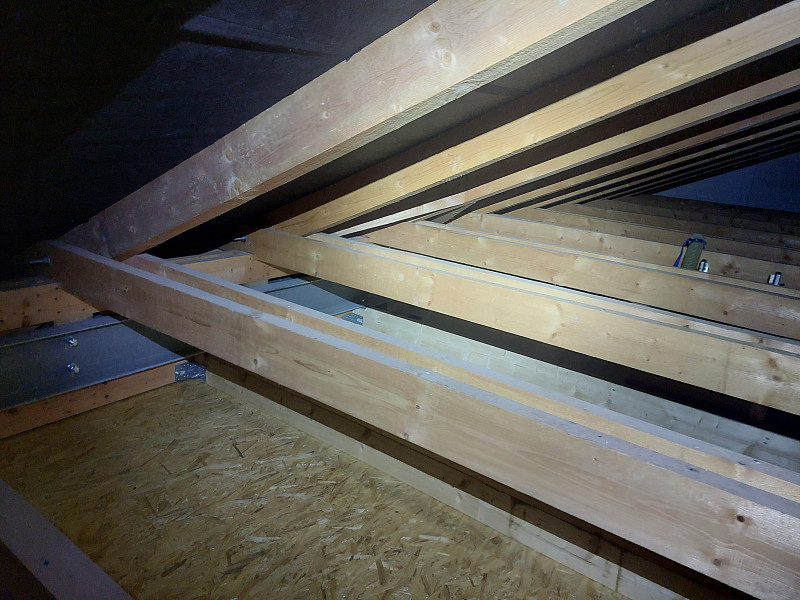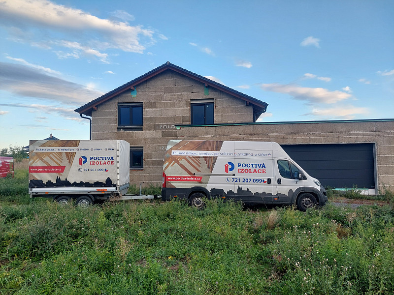 V první polovině září 2025 zateplila Poctivá izolace strop a šikminy patrové novostavby rodinného domu na Chrudimsku, v obci Sobětuchy. Rodinný dům se sedlovou střechou, krytinou z tašek, kontralatěmi a difuzní folií bylo třeba izolovat jak ve volné vodorovné ploše, tak i šikminy střechy za OSB parotěsnící vrstvou. Nejdříve tedy náš profi tým proškolených pracovníků nafoukal za OSB desky v šikmině izolaci s vyšším objemem tak, aby se izolace dostala do všech konstrukcí šikminy. Poté na vodorovnou plochu pod hřebenem střechy, mezi OSB desky a kleštiny, nafoukal izolaci s větším náběhem u šikminy střechy, kde po celé délce byly zpevňující ocelová íčka. Ty bylo potřeba dostat do ideální izolační vrstvy. Na celkovou plochu asi 160 m2 bylo tedy třeba zhotovit vrstvu izolace do šikmin ve vrstvě 36 cm s větším hutněním a na vodorovnou plochu ve vrstvě 46 cm s důkladným obizolováním ocelových íček. Jako materiál byla zvolena skelná minerální izolace Ursa Pure Floc od společnosti Ursa. Vznikla tak nová plně funkční izolační vrstva bez jakýchkoliv tepelných mostů, která zajistí dokonalý tepelný komfort v domě po celý rok.