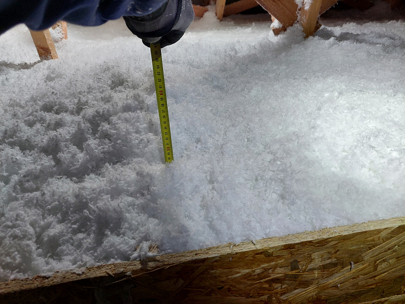 V půli října 2025 zateplila Poctivá izolace strop novostavby rodinného domu v Budišově. Dům disponoval sedlovou střechou a krovem se sbíjených vazníků. Pod spodní pásnicí vazníků byl svěšen sádrokartonový podhled s parotěsnou fólií, lemy na vnější obvodové zdi byly též a kolem stropního výlezu byl zvýšen rám s navazující pochozí středovou částí půdy. Na celkovou plochu asi 140 m2 nafoukal náš profi tým proškolených pracovníků izolaci ve vrstvě vysoké 44 cm včetně věnce k zarážce. Jako materiál byla zvolena skelná minerální izolace Supafil loft PRO od společnosti Knauf. Vznikla tak nová plně funkční izolační vrstva bez jakýchkoliv tepelných mostů, která zajistí dokonalý tepelný komfort v domě po celý rok.