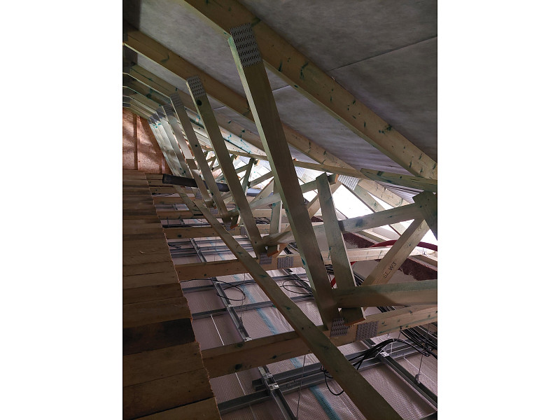 Při zateplování stropu novostavby se sedlovou střechou a sádrokartonovým stropem na Karlovarsku bylo třeba vytvořit novou izolační vrstvu. Jedině foukaná izolace dokáže ve vazníkové střešní konstrukci efektivně vytvořit souvislou vrstvu zateplení stropu bez tepelných mostů. Díky Poctivé izolaci navíc budete mít zatepleno rychle, dokonale a hlavně poctivě. Jako materiál byla v případě zateplení stropu novostavby v Horách u Jenišova použita minerální skelná izolace Ursa Pure Floc od společnosti Ursa. Tento izolant má mnoho skvělých výhod – nesléhává, je prodyšný, nehořlavý, ekologický a má nízkou objemovou hmotnost. Poctivá izolace má ve své nabídce celkem 5 druhů izolačních materiálů. Krom minerálních skelných izolací jsou to rovněž minerální čedičové izolace, celulózové neboli papírové izolace, dřevovláknité a polystyrénové izolace. S výběrem toho pravého izolačního materiálu pro Váš typ konstrukce Vám v Poctivé izolace rádi poradíme a pomůžeme. Máme za sebou již stovky zakázek a řadu let zkušeností, o které se s Vámi rádi podělíme. Poptejte si zateplení stropu či střechy i Vy. Nechte se inspirovat našimi realizacemi nebo nám Zavolejte 721207099 a my Vám rádi se zateplením Vašeho stropu nebo zateplení střechy poradíme a pomůžeme.
