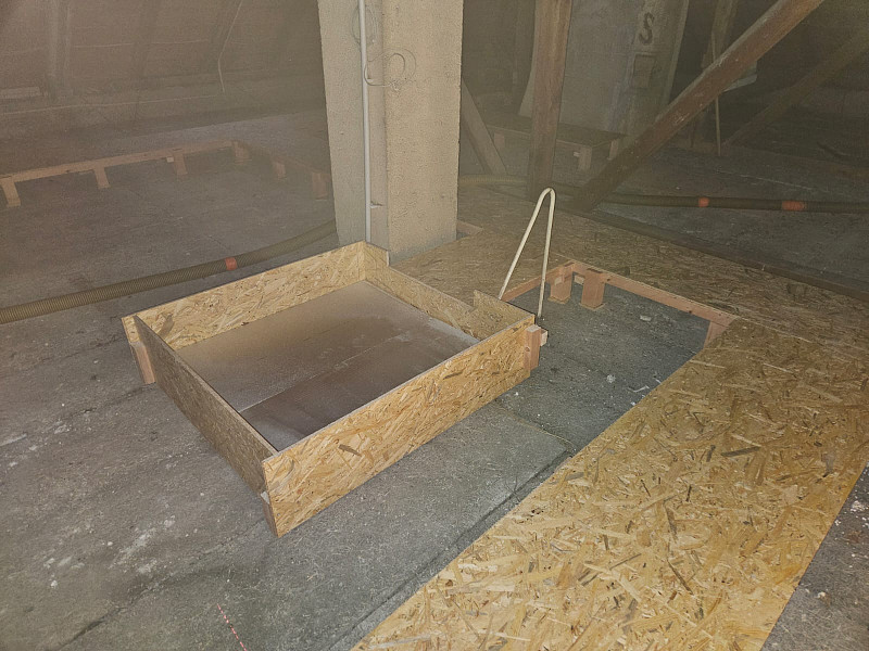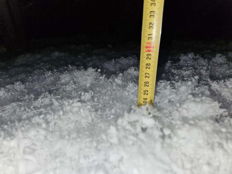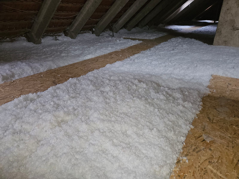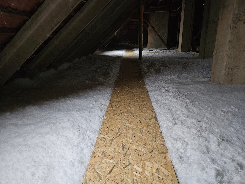 V polovině února 2025 zateplila Poctivá izolace stávající bytový dům v Jihlavě. Patrový zděný bytový dům s valbovou střechou s krytinou z tašek na latích se nájemníci rozhodli zateplit v rámci energetických úspor. Jedním z bodů bylo zateplení stropu posledního podlaží, a to z prostoru půdy. Na betonové podlaze již byla stávající izolace původní z pevného deskového polystyrenu. Po zatěžkávací zkoušce na vystavění revizní lávky jsme se s investorem dohodli, že polystyren může na podlaze zůstat a my dofoukáme potřebnou novou vrstvu izolace dle zadání projektu. Náš profi tým proškolených pracovníků nejdříve tedy vystavěl po celé délce středem půdy revizní lávku s přístupem ke komínům, ke střešním oknům a prostupům nuceného odvětrání, u vstupu obednil vytvořením schůdku a následně na celou plochu půdy cca 360 m2 nafoukal novou 21 cm vysokou izolační vrstvu. Jako materiál byla zvolena minerální foukaná vata Ursa Pure Floc na bázi skla od společnosti Ursa. Vznikla tak nová izolační vrstva bez jakýchkoliv tepelných mostů, která zajistí dokonalý tepelný komfort v domě po celý rok.