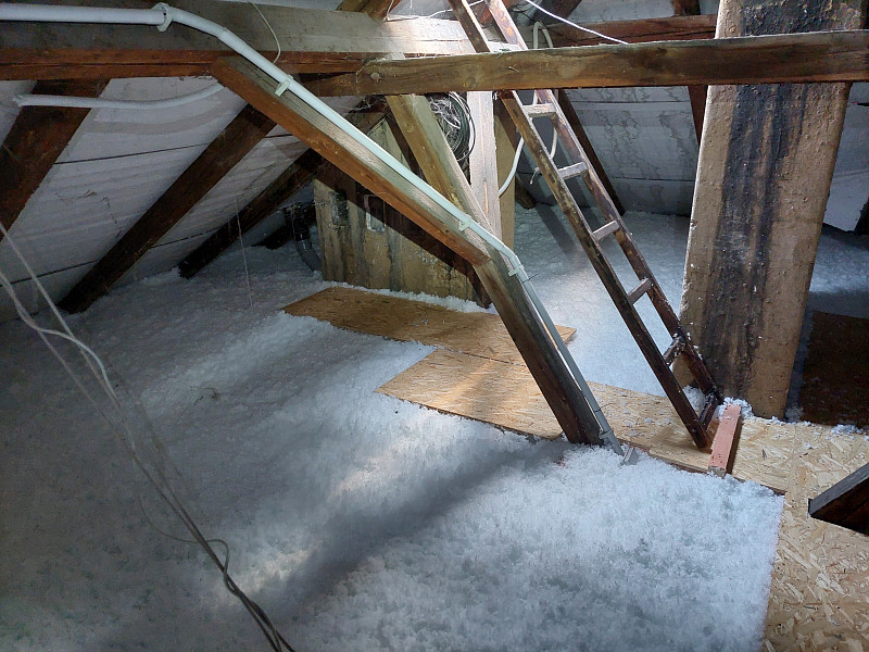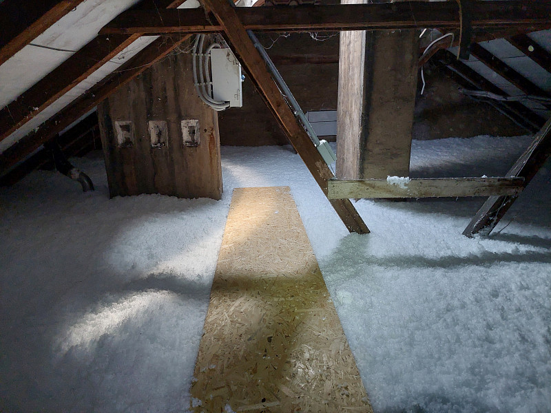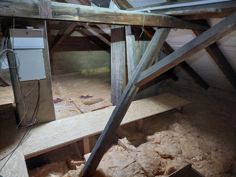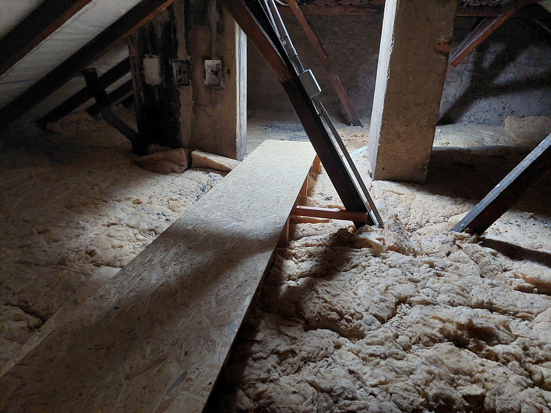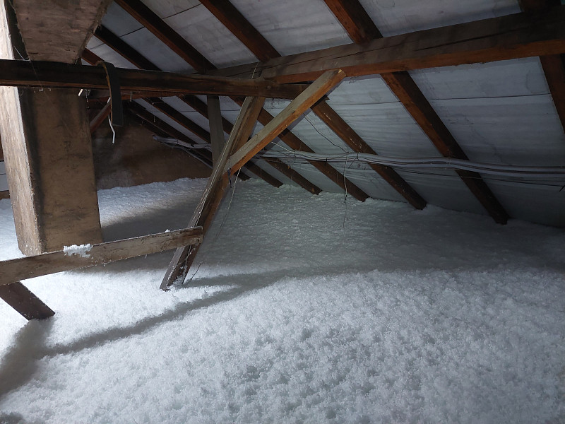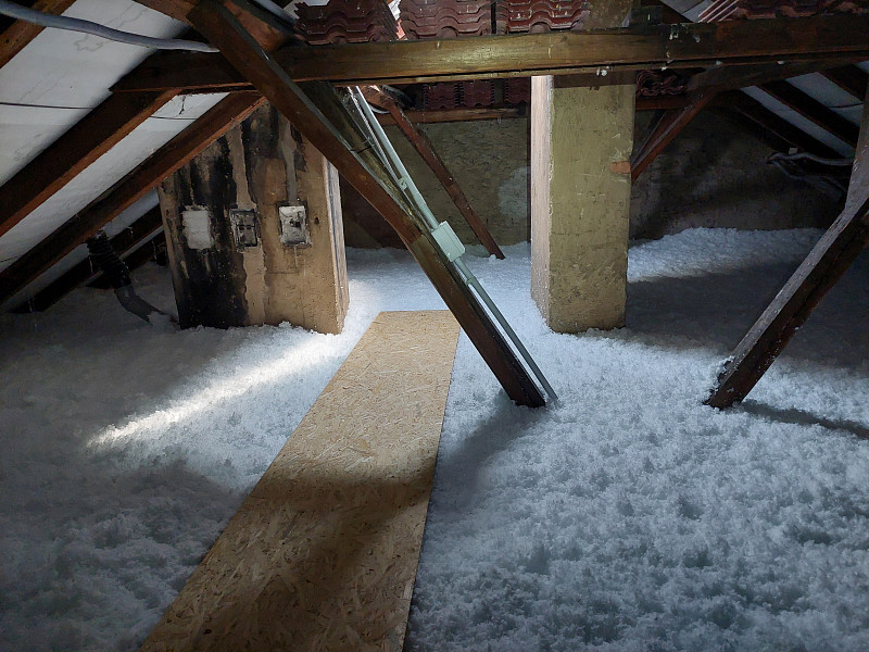 V srpnu 2024 zateplila Poctivá izolace stávající patrový bytový dům s valbovou střechou. V půdním prostoru již byla na podlaze ložená izolace – rolovaná vata, ale již nesplňovala tepelnou normu pro energetické úspory domu v rámci dotačního titulu pro bytové domy. Nejdříve se tedy zvýšil rám stropního výlezu a vystavěla revizní lávka pro kontrolu podstřeší a komínů. Jakmile byly stavební práce hotové, nafoukala se na stávající izolaci nová vrstva izolace. Jako materiál byla zvolena skelná minerální izolace Supafil loft PRO od společnosti Knauf. Vznikla tak nová plně funkční izolační vrstva bez jakýchkoliv tepelných mostů, která zajistí dokonalý tepelný komfort v domě po celý rok.