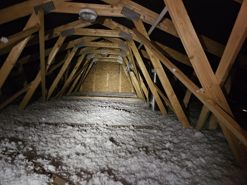 Začátkem listopadu 2025 zateplila Poctivá izolace strop novostavby rodinného domu v Dobrušce. Novostavba-dřevostavba disponovala sedlovou střechou s krytinou z tašek a krovem ze sbíjených vazníků. Pod spodní pásnicí byla parotěsná folie jištěna latěmi nad instalační mezerou, na kterou náš profi tým proškolených pracovníků nafoukal v ploše cca 110 m2 mezi vazníky izolační vrstvu vysokou 38 cm. Jako materiál byla zvolena skelná minerální izolace Supafil loft PRO od společnosti Knauf. Vznikla tak nová plně funkční izolační vrstva bez jakýchkoliv tepelných mostů, která zajistí dokonalý tepelný komfort v domě po celý rok.