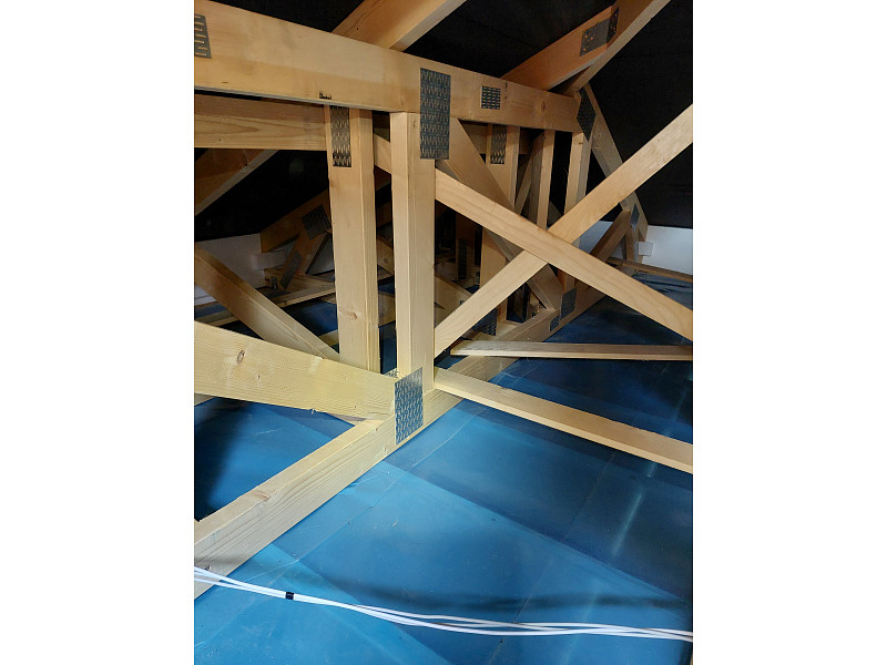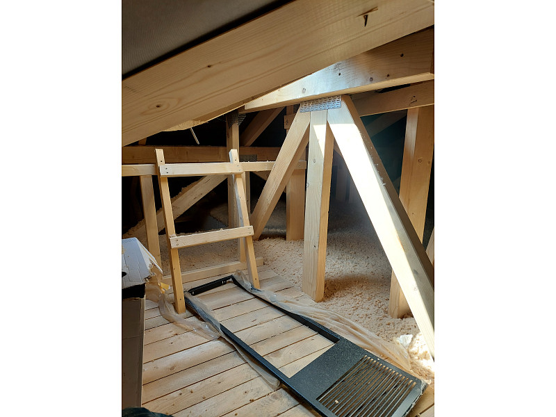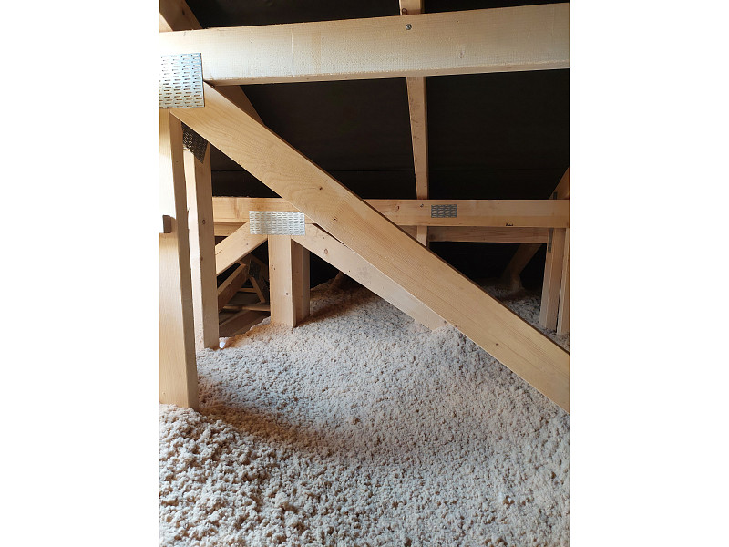 Začátkem září 2025 zateplila Poctivá izolace strop právě dostavěné dřevostavby rodinného domu v Kozmicích. Rodinný dům s valbovou střechou a krytinou z tašek měl krov z pevného sbíjeného vazníku, pod nímž byl svěšen sádrokartonový strop s parotěsnou fólií. Středem od stropního výlezu byla vystavěna pochozí plocha s prkenným záklopem s větranými mezerami, rám stropního výlezu byl vyvýšen a na obvodové zdi byly vytvořeny lemy tak, aby se nefoukalo až do podbití střechy. Na celkovou plochu asi 100 m2 bylo tedy třeba zhotovit 320 mm vysokou vrstvu izolace. Jelikož jako materiál byla zvolena dřevovláknitá izolace Steico zell s výbornou měrnou kapacitou a sléhavostí do 20 %, aplikační výška tedy byla o 20 % vyšší. Vznikla tak plně funkční izolační vrstva bez jakýchkoliv tepelných mostů, která zajistí dokonalý tepelný komfort v domě po celý rok.