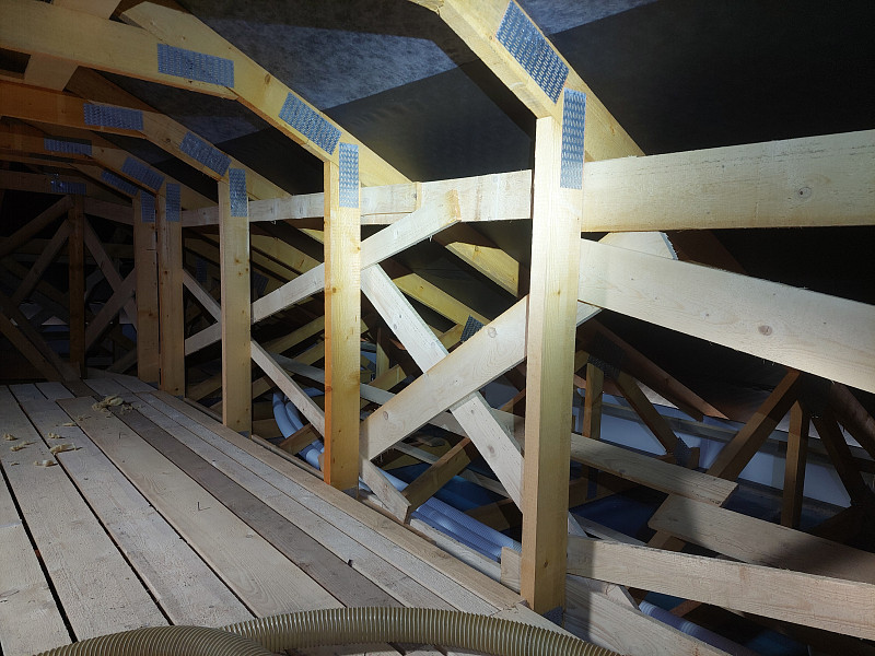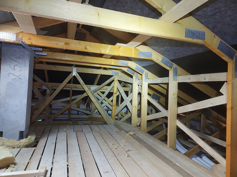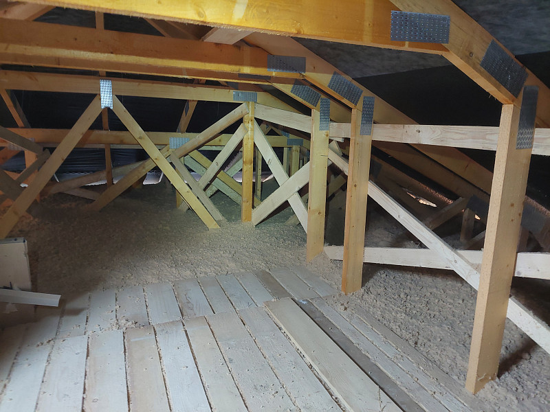 Poctivá izolace zateplila sádrokartonový strop dřevostavby v Otvicích. Novostavba rodinného domu typu bungalov disponovala valbovou střechou a krytinou z tašek u hřebene odvětrávaných. Ve vazníkovém krovu byla středem vystavěna pochozí plocha z prken s větranými mezerami, ke spodní pásnici vazníků byla parotěsná fólie jištěna latěmi a pod fólií samotný rošt se sádrokartonovým podhledem. Kolem komína byla připevněna nehořlavá minerální izolace, kolem stropního výlezu zvýšen rám a půdním prostorem vedl rozvod rekuperace. Na celkovou plochu asi 135 m2 bylo tedy třeba zhotovit danou vrstvu izolace dle projektu, k EPS zarážce na věnci. Jako materiál byla zvolena dřevovláknitá izolace Steico zell od společnosti Steico, kterou náš profi tým proškolených pracovníků nafoukal nad sádrokartonový strop ve vrstvě vysoké 40 cm. Vznikla tak nová plně funkční izolační vrstva bez jakýchkoliv tepelných mostů, která zajistí dokonalý tepelný komfort v domě po celý rok.