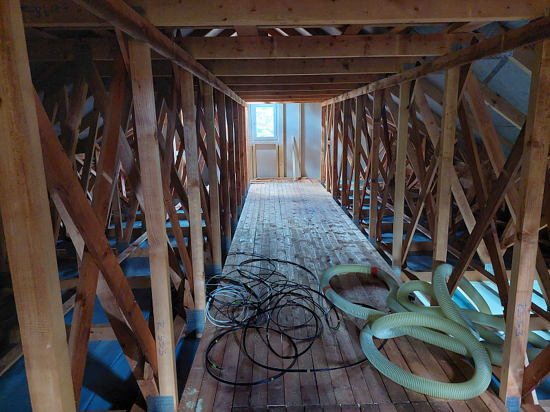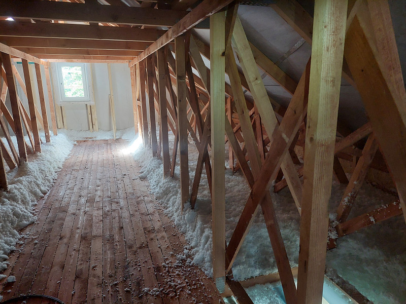Na konci června 2025 zateplila Poctivá izolace strop novostavby bungalovu v Chaloupkách na Berounsku. Dřevostavba disponovala sedlovou střechou s krovem ze sbíjených vazníků. Zespoda byl instalován podhled ze sádrokartonových desek a parotěsná fólie na trámkovém roštu. Na celkovou plochu asi 120 m2 bylo tedy třeba zhotovit novou vrstvu izolace. Jako materiál byla zvolena skelná minerální izolace Supafil loft od společnosti Knauf, kterou náš profi tým proškolených pracovníků nafoukal ve vrstvě vysoké 30 cm. Vznikla tak nová plně funkční izolační vrstva bez jakýchkoliv tepelných mostů, která zajistí dokonalý tepelný komfort v domě po celý rok.