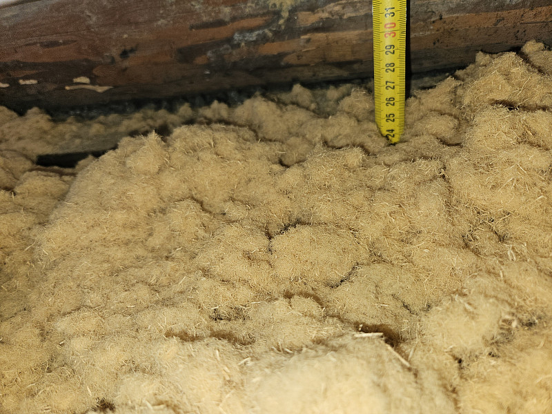 V březnu 2025 zateplila Poctivá izolace trámový strop rodinného domu s bytovými jednotkami v Karlových Varech. V jednom z bytů s podlahou s dvojitým trámem se investor rozhodl rekonstruovat a odhlučnit podlahu. Mezi trámy pod prkenným záklopem bylo tedy třeba nafoukat izolační vrstvu 26 cm s vyšším objemem. Montážní otvory odklopením prken ve středové části si připravil investor svépomocí a náš profi tým proškolených pracovníků nahutnil mezi trámy pod prkenný záklop dřevovláknitou izolaci Naturheld. Vznikla tak nová plně funkční izolační vrstva, která zajistí dokonalý tepelný komfort v domě po celý rok.