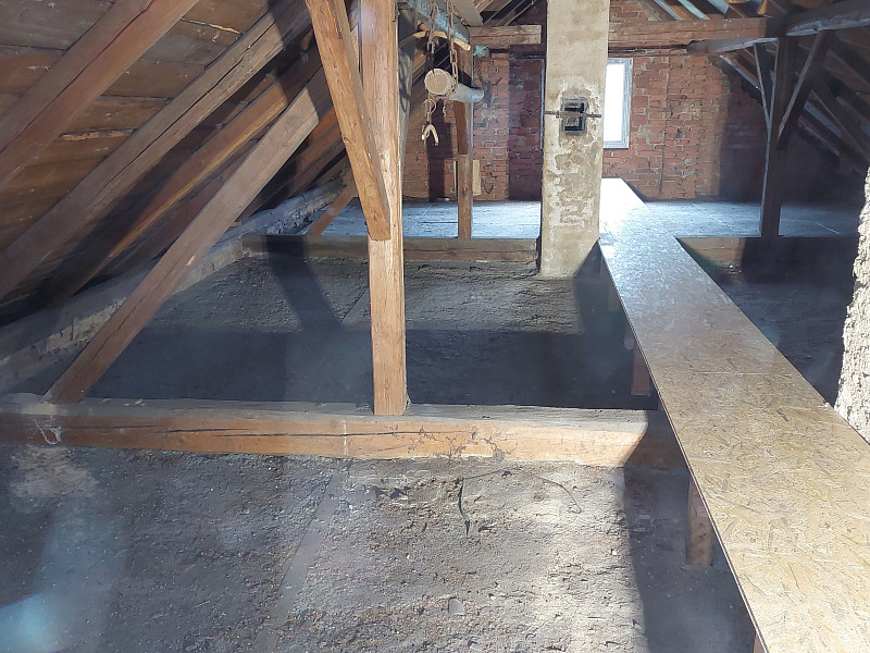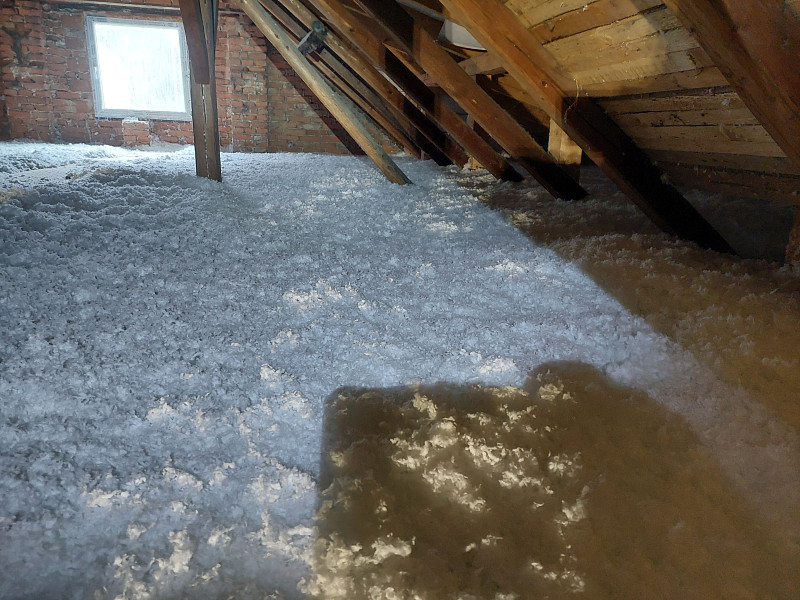 K začátku října 2024 zateplila Poctivá izolace stávající rodinný dům ve Zbraslavicích. Dům s trámovou vazbou krovu a novou sedlovou střechou bylo potřeba před nadcházející zimou zateplit, a to z půdního prostoru, kdy jsme na podlahu půdy s betonovou krustou vystavěli revizní lávku na celou délku, od štítu k výlezu. U pozednice, kde nebylo podbití, jsme vytvořili lem z polystyrenových kazet, aby byla plocha pro izolování ohraničená a izolace nepadala mimo podstřešní prostor. Na celkovou plochu asi 140 m2 bylo tedy třeba zhotovit novou vrstvu izolace. Jako materiál byla zvolena skelná minerální izolace Supafil loft PRO od společnosti Knauf, kterou náš profi tým proškolených pracovníků nafoukal ve vrstvě vysoké 30 cm. Vznikla tak nová plně funkční izolační vrstva bez jakýchkoliv tepelných mostů, která zajistí dokonalý tepelný komfort v domě po celý rok.