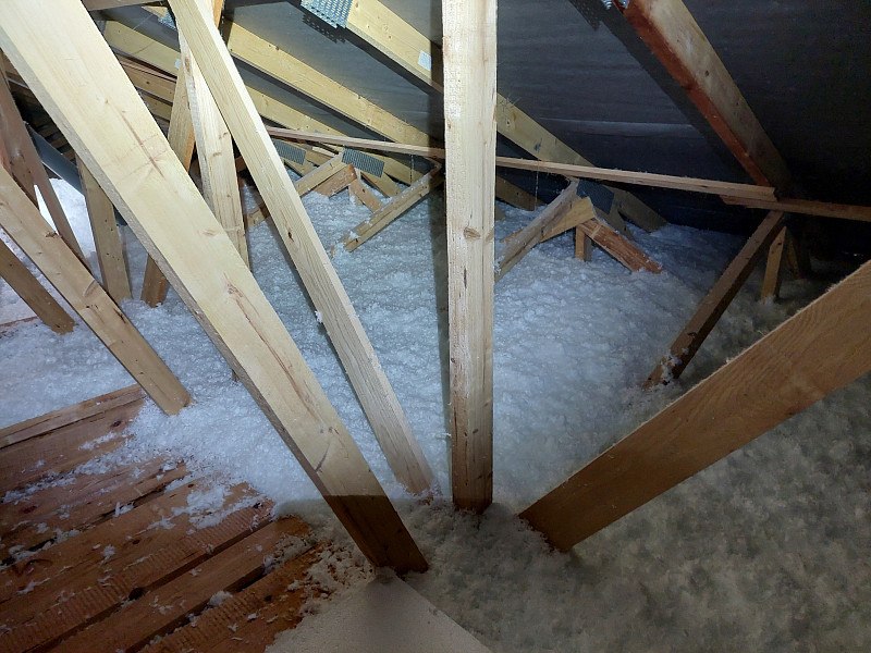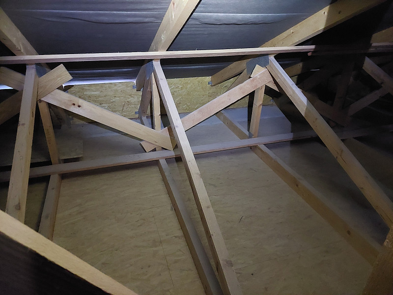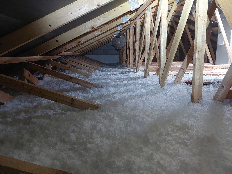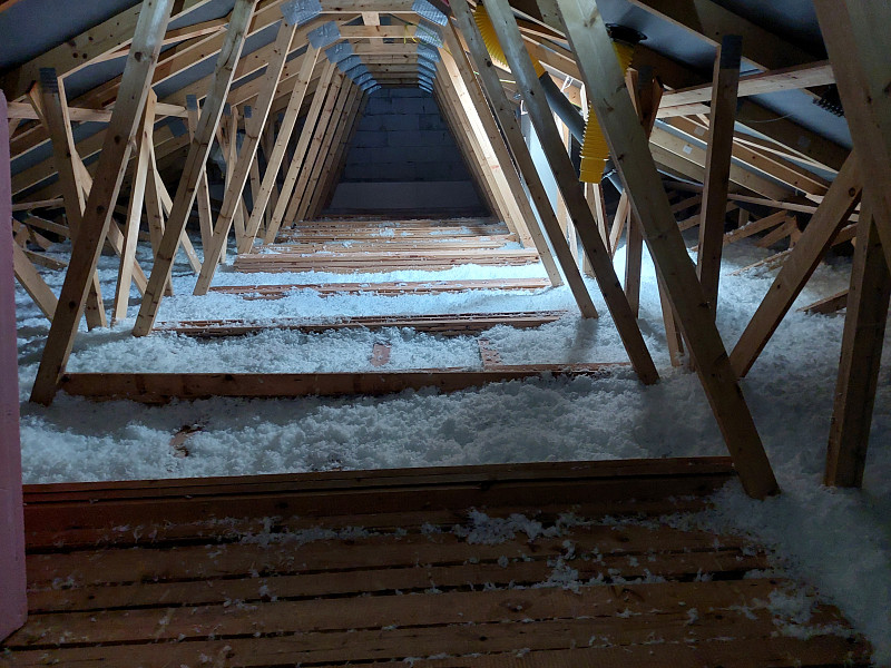 Začátkem listopadu 2024 zateplila Poctivá izolace novostavbu rodinného domu v Nemojanech. Na okraji obce, kde vyrůstá zástavba rodinných domů, jsme zateplovali novostavbu rodinného domu vsazeného do mírného svahu nedaleko říčky Rakovec. Dům disponoval sedlovou střechou s krytinou z tašek a krovem ze studiového sbíjeného vazníku. Středem procházela pochozí plocha z prken, kde mezírky mezi prkny umožňují odvětrávání izolace. Ke spodní pásnici vazníků byly namontované OSB desky, obvodová zeď byla lemována EPS a rám stropního výlezu byl vyvýšen. Jakmile jsme s investorem domluvili termín pro aplikaci izolace, náš profi tým proškolených pracovníků přijel na domluvený čas a nafoukal mezi a nad vazníky tepelnou izolaci ve vrstvě 44 cm. Jako materiál byla zvolena skelná minerální izolace Supafil loft PRO od společnosti Knauf. Vznikla tak nová plně funkční izolační vrstva bez jakýchkoliv tepelných mostů, která zajistí dokonalý tepelný komfort v domě po celý rok.