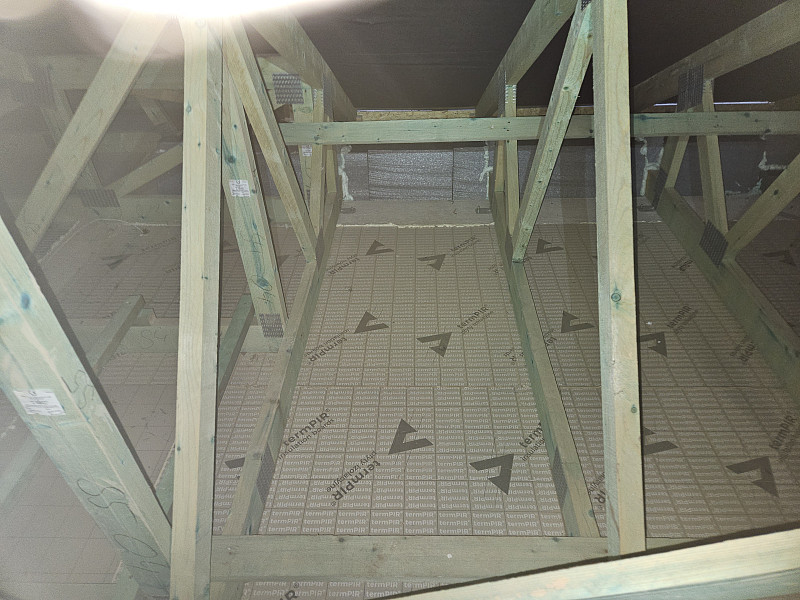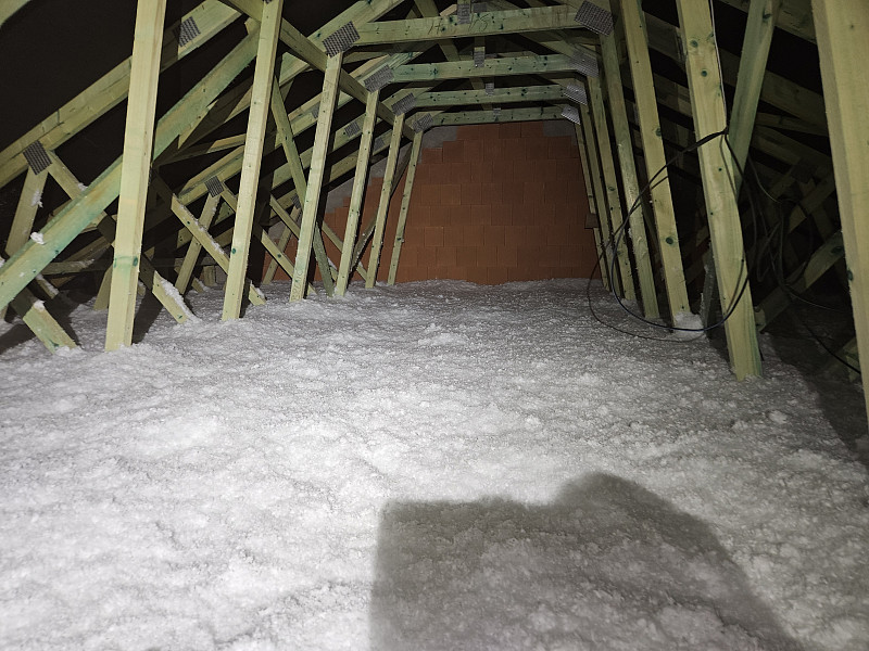 Ke konci ledna 2025 zateplila Poctivá izolace novostavbu rodinného domu v Dolní Dobrouči. Novostavba rodinného domu se sedlovou střechou s krytinou z tašek byla připravena k aplikaci zateplení pomocí tepelné foukané izolace mezi a nad vazníky. Pod spodní pásnicí byly připevněny PIR desky s vatou, obednění stropního výlezu bylo též vyvýšeno a veškeré mezírky u pozednice vypěněny. Na celkovou plochu asi 170 m2 bylo tedy třeba zhotovit doplňující vrstvu izolace pro zateplení vazníků, kdy náš profi tým proškolených pracovníků nafoukal vrstvu vysokou 22 cm. Jako materiál byla zvolena skelná minerální izolace Ursa Pure Floc od společnosti Ursa. Vznikla tak nová plně funkční izolační vrstva bez jakýchkoliv tepelných mostů, která zajistí dokonalý tepelný komfort v domě po celý rok.