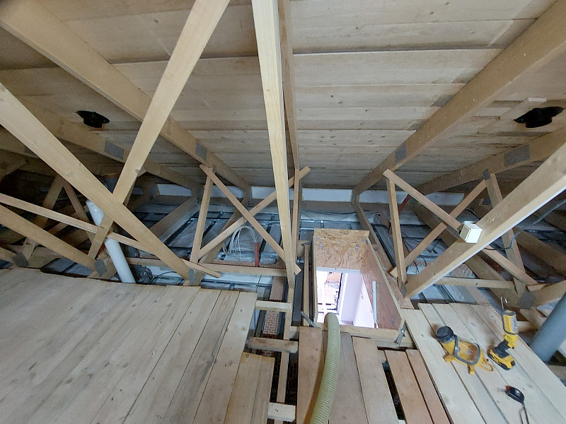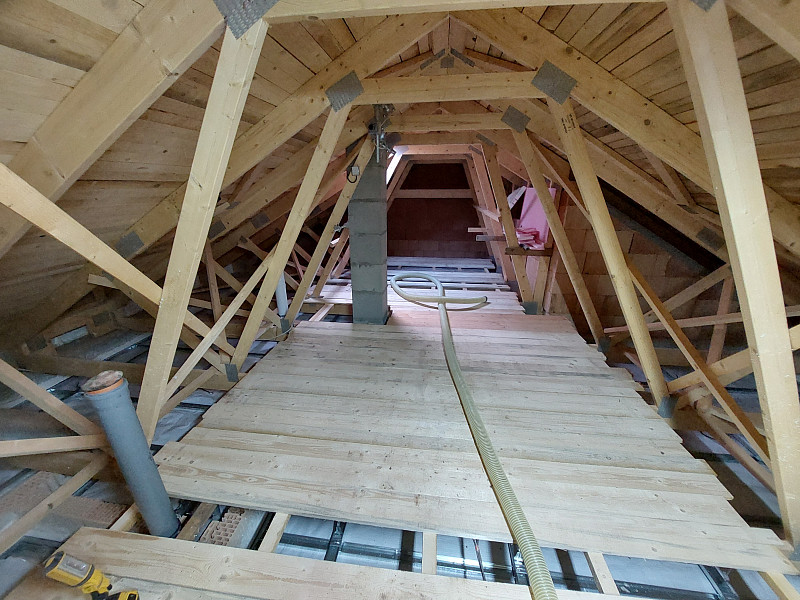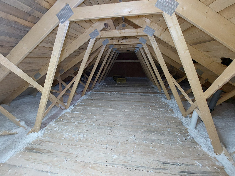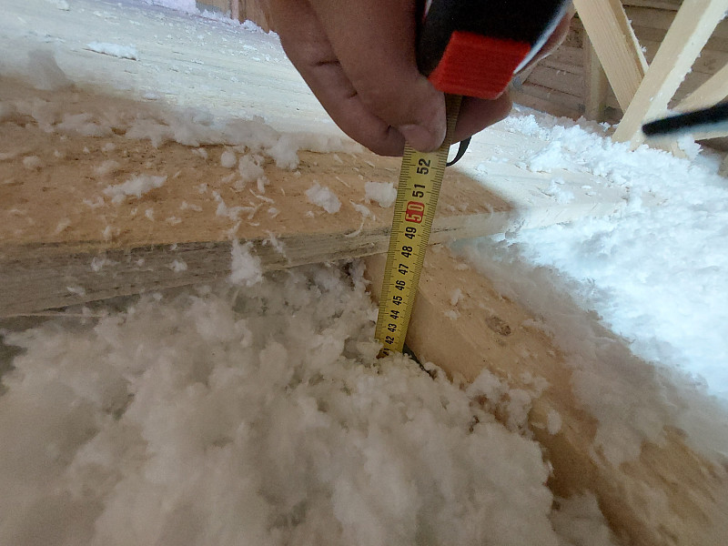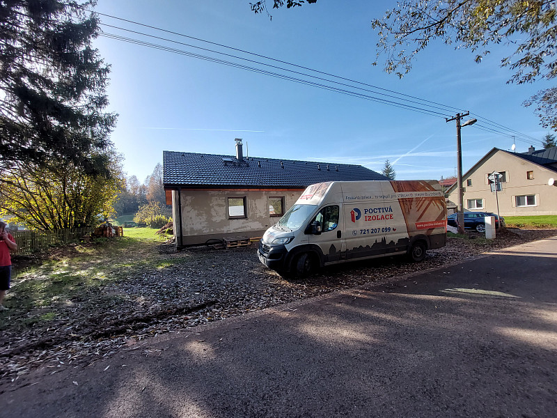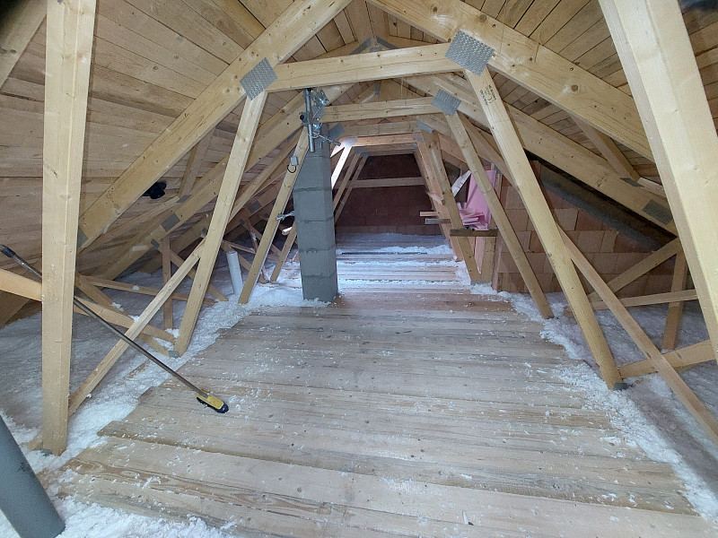 Koncem října 2022 zateplila Poctivá izolace strop novostavby rodinného domu se sedlovou střechou v obci Staré Buky. Jednalo se o novostavbu typu bungalov s typickou vazníkovou konstrukcí a sádrokartonovým podhledem a použití technologie foukané izolace bylo tedy v tomto případě ideálním řešením. Jako materiál byla zvolena skelná minerální izolace Supafil loft od společnosti Knauf, kterou tým pracovníků Poctivé izolace nafoukal na SDK podhled ve vrstvě vysoké 40 cm. Zatepleno bylo během chvilky.