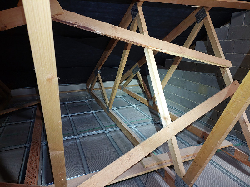 V září 2025 zateplila Poctivá izolace strop zděné patrové novostavby v Kladně. Rodinný dům disponoval sedlovou střechou a krovem ze sbíjených vazníků. Pod spodní pásnicí byl svěšen sádrokartonový podhled s parotěsnou fólií, který bylo potřeba zateplit. Na celkovou plochu asi 140 m2 bylo tedy třeba zhotovit novou vrstvu izolace. Jako materiál byla zvolena skelná minerální izolace Ursa Pure Floc od společnosti Ursa, kterou náš profi tým proškolených pracovníků nafoukal na sádrokartonový strop ve vrstvě vysoké 30 cm. Vznikla tak nová plně funkční izolační vrstva bez jakýchkoliv tepelných mostů, která zajistí dokonalý tepelný komfort v domě po celý rok.
