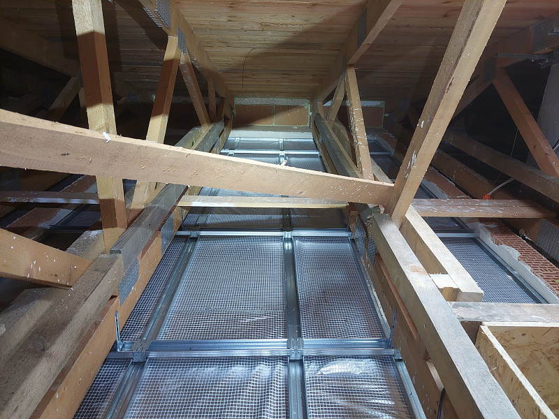 Pro izolování stropu novostavby se sádrokartonovým podhledem jsme s investorem zvolili minerální foukanou izolaciz bílého panenského vlákna pro jeho nízkou objemovou hmotnost, difuzní odpor pro odvětrávání vlhkosti, nesléhavost, a hlavně jemnost při styku s izolací, jelikož se v půdním prostoru nachází revizní lávka s odkladovou plochou. Poctivá izolace má ve své nabídce celkem 5 druhů izolačních materiálů. Krom minerálních skelných izolací jsou to rovněž minerální čedičové izolace, celulózové neboli papírové izolace, dřevovláknité a polystyrénové izolace. S výběrem toho pravého izolačního materiálu pro Váš typ konstrukce Vám v Poctivé izolace rádi poradíme a pomůžeme. Máme za sebou již stovky zakázek a řadu let zkušeností, o které se s Vámi rádi podělíme. Poptejte si zateplení stropu či střechy i Vy.