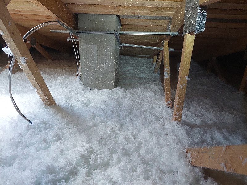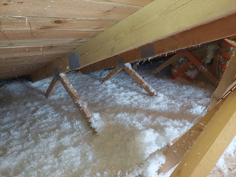 Na konci roku 2023 nás oslovil zákazník na základě doporučení, což nás moc těší! Byli jsme osloveni za účelem zateplení stropu novostavby pomocí foukané tepelné izolace. Jednalo se o klasický krov s konstrukcí sbíjeného příhradového vazníku. Pro tuto konstrukci je tepelná foukaná izolace skvělým způsobem, jak zamezit tepelným mostům mezi vazníky. Nabídku jsme investorovi vypracovali dle doložené projektové dokumentace s přepočtem pro foukanou izolaci. Na jaře měl investor připraveno pro aplikaci tepelné foukané izolace, a tak jsme bezplatně na stavbu zajeli, abychom se ujistili, že je strop připraven pro příjezd naší party a aplikaci foukané izolace. Při domluveném termínu aplikace si naši foukači ještě jednou zkontrolovali půdní prostor a zaměřili se na místa jako jsou příčky prostupující do půdního prostoru, které bylo třeba zafoukat stejnou vrstvou foukané izolace jako ostatní plochu, tedy 40 cm. Za pouhé dopoledne bylo efektivně zatepleno.