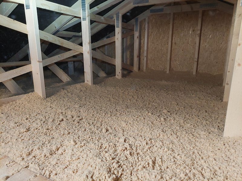 Při zateplování novostavby se sedlovou střechou a sádrokartonovým stropem ve Městě Touškov bylo třeba vytvořit izolační vrstvu. Jedině foukaná izolace dokáže ve vazníkové konstrukci efektivně vytvořit souvislou vrstvu zateplení stropu bez tepelných mostů. Díky Poctivé izolaci navíc budete mít zatepleno rychle, dokonale a hlavně poctivě. Jako materiál byla v případě zateplení novostavby ve městě Touškov použita dřevovláknitá izolace Steico zell od společnosti Steico, která má mnoho skvělých výhod – je ekologická a díky své vyšší objemové hmotnosti lépe akumuluje teplo, kdy zajišťuje tepelný komfort jak v zimě tak v létě. Poctivá izolace má ve své nabídce celkem 5 druhů izolačních materiálů. Krom dřevovláknitých izolací jsou to rovněž minerální čedičové izolace, minerální skelné izolace, celulózové neboli papírové izolace a polystyrénové izolace. S výběrem toho pravého izolačního materiálu pro Váš typ konstrukce Vám v Poctivé izolace rádi poradíme a pomůžeme. Máme za sebou již stovky zakázek a řadu let zkušeností, o které se s Vámi rádi podělíme. Poptejte si zateplení stropu či střechy i Vy.