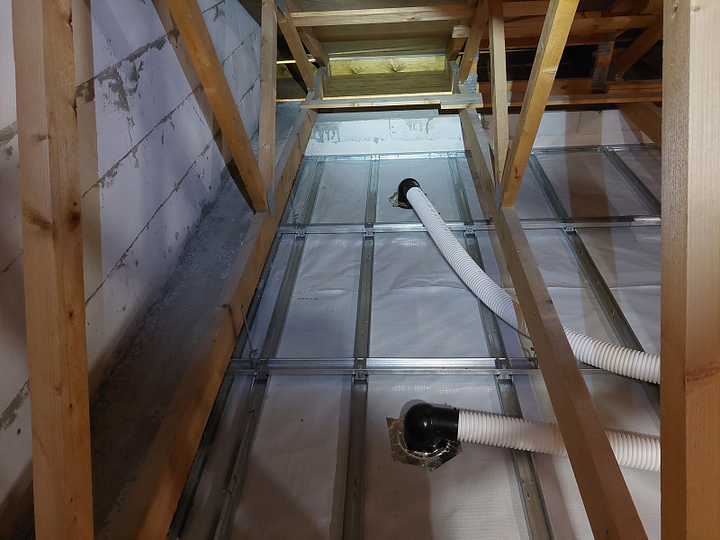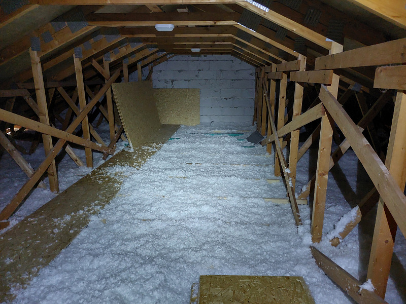 V červnu 2024 zateplila Poctivá izolace novostavbu rodinného domu ve Skořenicích. Jednalo se o přízemní rodinný dům se sedlovou střechou s vyzděným štítem. Středem studiového vazníku byla na pevno vystavěna pochozí podlaha na dřevěném roštu zaklopena OSB deskami. Pod podlahou vedlo potrubí od rekuperace. Jelikož bylo potřeba, aby izolace měla všude stejnou výšku, desky se doklopily, na rošt se položily střešní latě a tím se zvýšil prostor pro izolování prostoru s rozvodem vzduchu. Po zateplení pomocí foukané izolace se opět zaklopilo. Naši aplikanti foukané izolace kontrolují též výšku vyzdění příček, aby i zde, pokud jsou příčky do půdního prostoru vyzděny příliš vysoko, byla vrstva izolace stejná jako na ostatních plochách. Jako materiál byla zvolena skelná minerální izolace z panenského vlákna od společnosti Knauf Insulation, kterou náš profi tým proškolených pracovníků nafoukal na sádrokartonový strop v požadované vrstvě 38 cm. Vznikla tak plně funkční izolační vrstva bez jakýchkoliv tepelných mostů, která zajistí dokonalý tepelný komfort v domě po celý rok.