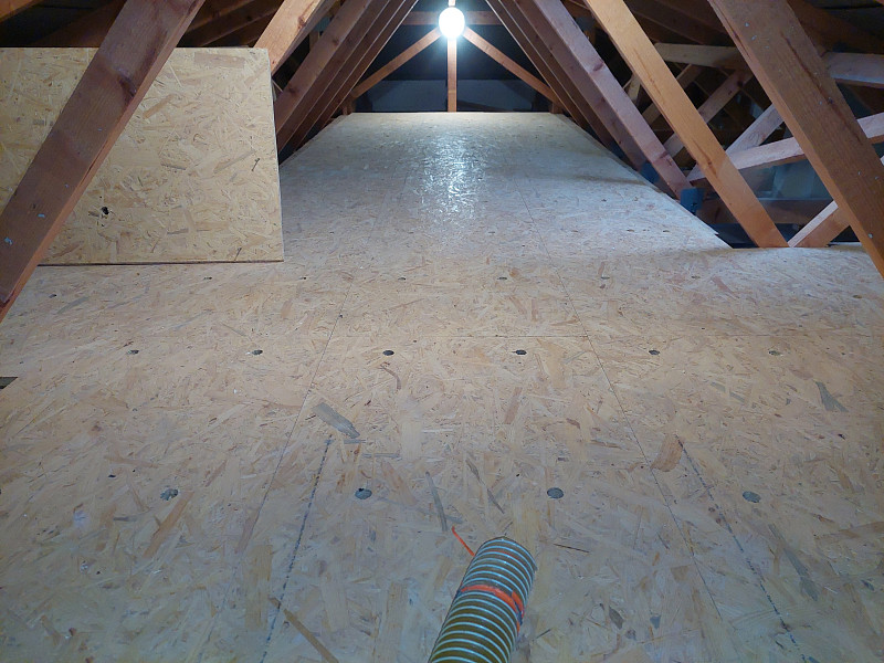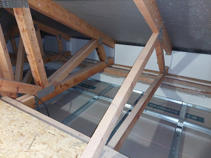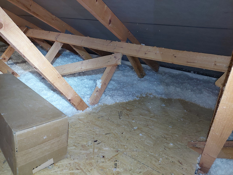 V listopadu 2024 zateplila Poctivá izolace novostavbu rodinného domu ve Starých Hodějovicích. Novostavba tvarem do L disponovala valbovou střechou a krovem ze sbíjených vazníků. Středem byla pochozí plocha z OSB desek místy s vykrouženými odvětrávacími otvory pro odvětráván vlhka z izolace. Na celkovou plochu asi 230 m2 bylo tedy třeba zhotovit vrstvu izolace bez tepelných mostů mezi vazníky, kterou náš profi tým proškolených pracovníků nafoukal na sádrokartonový strop ve vrstvě vysoké 32 cm. Vznikla tak plně funkční izolační vrstva bez jakýchkoliv tepelných mostů, která zajistí dokonalý tepelný komfort v domě po celý rok. Jako materiál byla zvolena skelná minerální izolace Supafil loft od společnosti Knauf.
