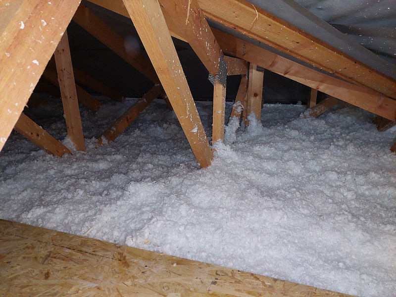 Při zateplování novostavby rodinného domu s valbovou střechou a krovem ze sbíjených vazníků bylo třeba vytvořit 32 cm vysokou izolační vrstvu. Jedině foukaná izolace dokáže ve vazníkové konstrukci efektivně vytvořit souvislou vrstvu zateplení stropu bez tepelných mostů. Díky Poctivé izolaci navíc budete mít zatepleno rychle, dokonale a hlavně poctivě. Jako materiál byla v případě zateplení domu ve Starých Hodějovicích použita minerální skelná izolace Supafil loft od společnosti Knauf. Supafil má mnoho skvělých výhod – nesléhává, je prodyšný, nehořlavý, ekologický a má nízkou objemovou hmotnost. Poctivá izolace má ve své nabídce celkem 5 druhů izolačních materiálů. Krom minerálních skelných izolací jsou to rovněž minerální čedičové izolace, celulózové neboli papírové izolace, dřevovláknité a polystyrénové izolace. S výběrem toho pravého izolačního materiálu pro Váš typ konstrukce Vám v Poctivé izolace rádi poradíme a pomůžeme. Máme za sebou již stovky zakázek a řadu let zkušeností, o které se s Vámi rádi podělíme. Poptejte si zateplení stropu či střechy i Vy.