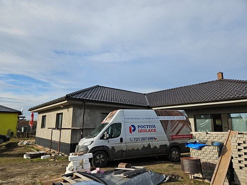Ke konci ledna 2025 zateplila Poctivá izolace novostavby typu bungalov tvarem do L v Konárovicích. Rodinný dům disponoval valbovou střechou s krytinou na prkenném podbití. Pod spodní pásnicí vazníkového krovu byl svěšen sádrokartonový podhled s parotěsnou fólií o ploše cca 215 m2, na který náš profi tým proškolených pracovníkůnafoukal izolační vrstvu vysokou 38 cm s izolováním mezi vazníky a nad vazníky. Pro pohyb v půdním prostoru byla vystavěna pochozí plocha s prkenným záklopem. Jako materiál byla zvolena skelná minerální izolace Supafil loft PROod společnosti Knauf. Vznikla tak nová plně funkční izolační vrstva bez jakýchkoliv tepelných mostů, která zajistí dokonalý tepelný komfort v domě po celý rok.