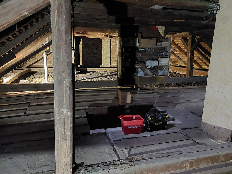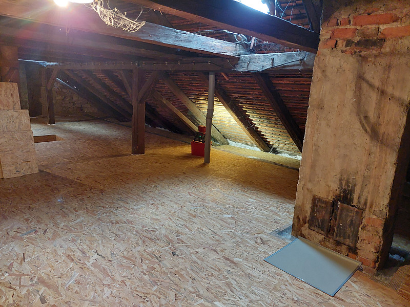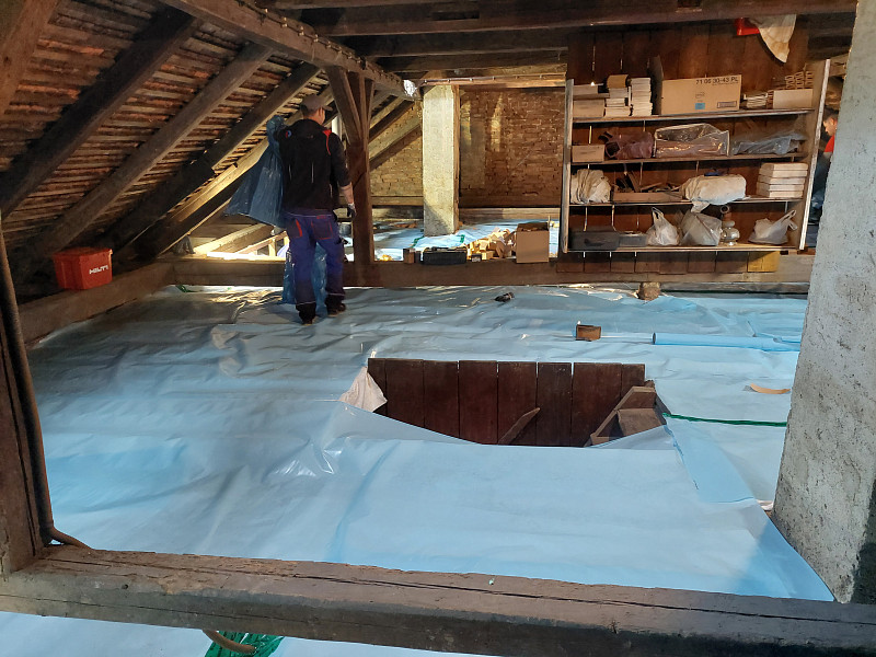 V říjnu 2025 zateplila Poctivá izolace strop stávajícího rodinného domu v Březové na Svitavsku. Jednalo se o patrový zděný dům z počátku 20. století, kdy trámový strop byl z půdního prostoru členitý ohledně pochozí části. V jedné části byl prkenný záklop, v další betonová vrstva a největší část tvořila kolem komína měkká vrstva násypu škváry a hlíny. Jelikož investor si přál mít půdu nadále využívanou, bylo tedy zapotřebí vystavět novou celistvou pochozí podlahu. Díky celkové nerovnosti podlahy až 50 cm se využili různé výšky špalků, které tvořili dřevěný rošt pro záklop. Nejprve tedy bylo potřeba na celou plochu půdy rozložit geotextílii, která brání při stavění roštu na nerovném podkladu podlahy protržení parotěsné fólie, která se na geotextílii posléze rozvinula. Následně se tedy na takto připravený povrch vystavěl dřevěný rošt, který zároveň bylo potřeba stavět s rovinatostí. S tímto si náš zkušený tým proškolených pracovníků bez problémů poradil. Jakmile byl rošt vystavěn do roviny, nafoukala se na celou plochu půdy 30 cm vysoká vrstva izolace a pomocí latí se mezi izolací a následným záklopem z OSB egger desek vytvořila větraná mezera pro odvětrávání případné vlhkosti z izolace. Na celkovou plochu asi 138 m2 jsme tedy zhotovili novou vrstvu izolace a po izolování stropu zůstala půda plně k dispozici k dalšímu jejímu využití. Jako materiál byla zvolena skelná minerální izolace Ursa Pure Floc od společnosti Ursa. Vznikla tak nová plně funkční izolační vrstva bez jakýchkoliv tepelných mostů, která zajistí dokonalý tepelný komfort v domě po celý rok.