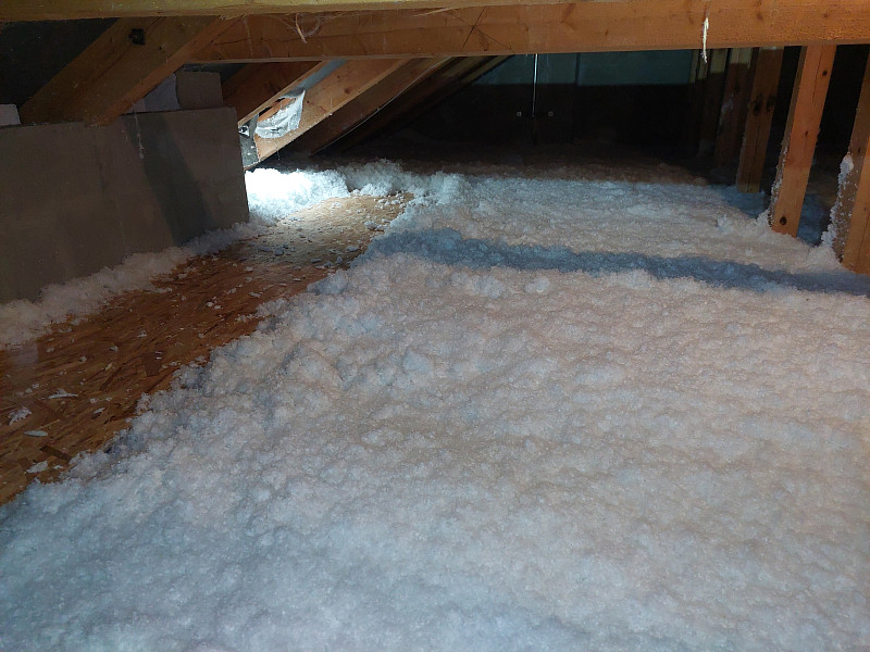 Při zateplování stávající rodinného domu se sedlovou střechou a trámovým stropem s prkenným záklopem ve Zdicích bylo třeba doplnit izolační vrstvu podle nové tepelné normy. Jedině foukaná izolace dokáže efektivně vytvořit souvislou vrstvu zateplení stropu bez tepelných mostů. Díky Poctivé izolaci navíc budete mít zatepleno rychle, dokonale a hlavně poctivě. Jako materiál byla v případě zateplení rodinného domu ve Zdicích použita minerální skelná izolace Supafil loftod společnosti Knauf. Supafil má mnoho skvělých výhod – nesléhává, je prodyšný, nehořlavý, ekologický a má nízkou objemovou hmotnost. Poctivá izolace má ve své nabídce celkem 5 druhů izolačních materiálů. Krom minerálních skelných izolací jsou to rovněž minerální čedičové izolace, celulózové neboli papírové izolace, dřevovláknité a polystyrénové izolace. S výběrem toho pravého izolačního materiálu pro Váš typ konstrukce Vám v Poctivé izolace rádi poradíme a pomůžeme. Máme za sebou již stovky zakázek a řadu let zkušeností, o které se s Vámi rádi podělíme. Poptejte si zateplení stropu či střechy i Vy.