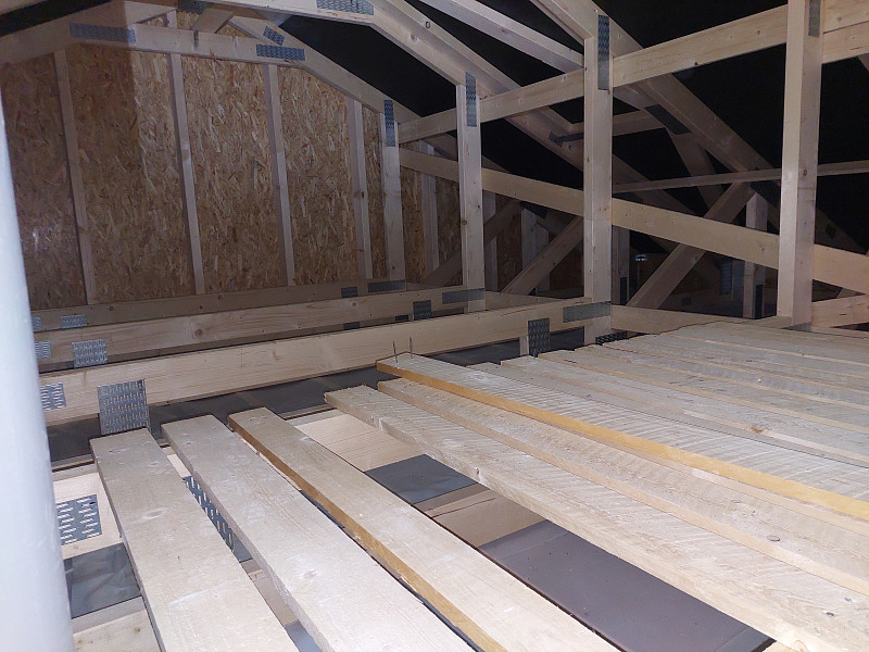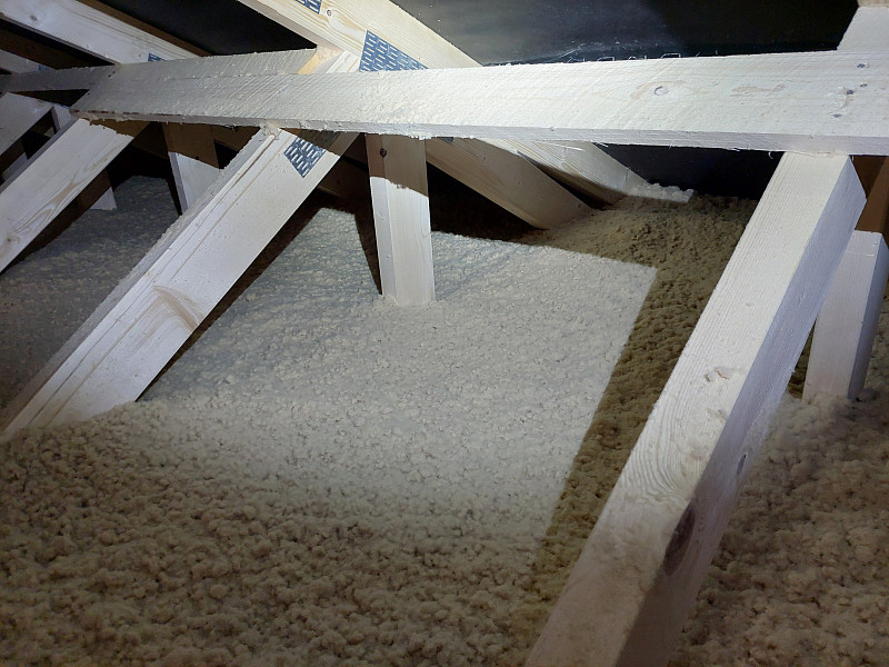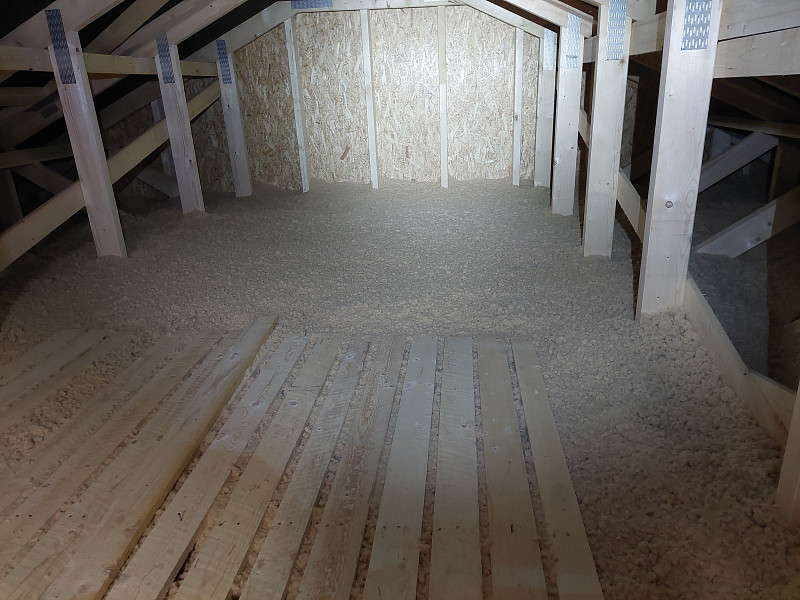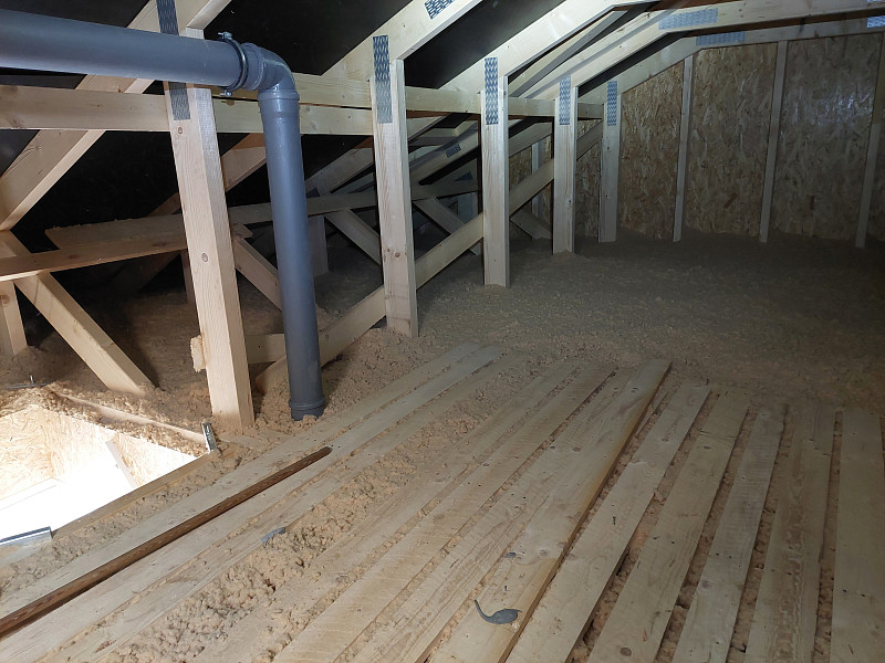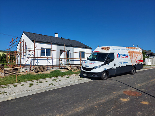 V polovině května 2024 jsme se jako subdodavatelská firma vydali směrem do Plzeňského kraje, malebného městečka Černošín, jehož krajina je plná tajuplných mohyl a historických příběhů. Na okraji městečka, kde vzniká zástavba rodinných domů, jsme jeli zaizolovat strop novostavby rodinného domu, dnes populární dřevostavby. Jednalo se o volné foukání mezi příhradové vazníky. Izolujeme zde dřevovláknitou tepelnou izolací, která pohlcuje vlhkost a propouští vodní páry. Navíc se jedná o recyklovatelný materiál. U této novostavby se jednalo o aplikaci dřevovláknité foukané izolace pod a mezi vazníky, kde byla připravena pochozí lávka z prken a obedněn stropní výlez. Výška foukané dřevovláknité izolace po sesednutí dle projektu činila 40 cm. Provedla se izolace každé skulinky vazníku bez tepelných mostů zajišťující tepelný komfort celého stropu.
