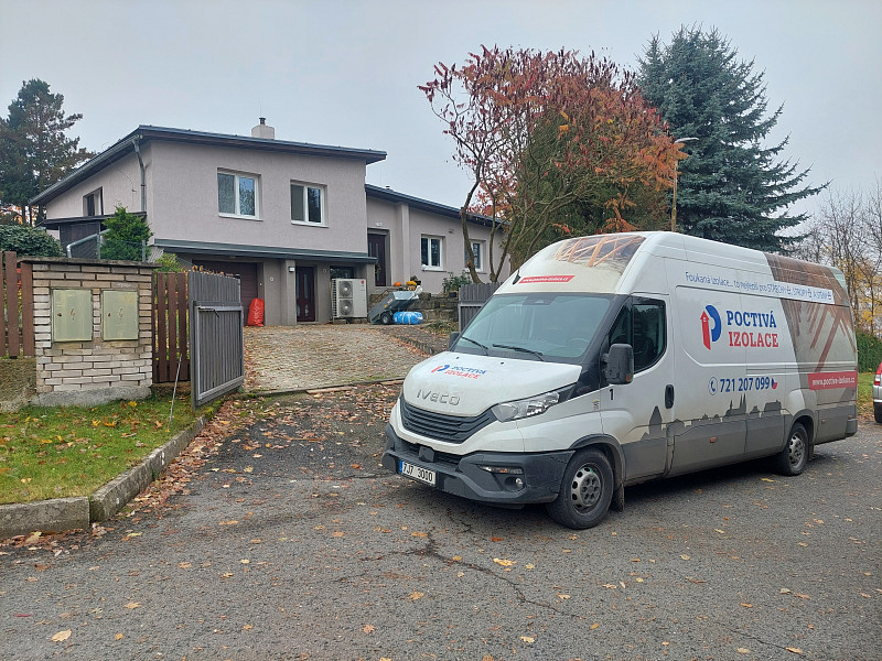 Na začátku listopadu 2025 zateplila Poctivá izolace strop stávajícího rodinného domu v České Lípě. Dům disponoval pultovou střechou dvou úrovní, s plechovou krytinou na prkenném podbití. Nad sníženým sádrokartonovým stropem, ve vazníkové střešní konstrukci byla již stávající izolace, kterou si přál investor doplnit o dalších 30 cm. Nejprve tedy náš profi tým proškolených pracovníků vytvořil do plechové krytiny obou střech montážní otvory a na stávající izolaci v ploše cca 190 m2 nafoukal na doplňující souvislou vrstvu izolace. Vznikla tak nová plně funkční izolační vrstva bez jakýchkoliv tepelných mostů, která zajistí dokonalý tepelný komfort v domě po celý rok.