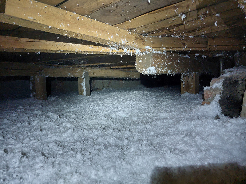 V listopadu 2024 zateplila Poctivá izolace stávající rodinný dům v Dolním Benešově. Investorka nás oslovila na základě přítomnosti na únorovém internetovém veletrhu Veleton, kde ji izolování pomocí foukané tepelné izolace zaujalo. Rodinný dům s rovnou dvouplášťovou střechou a krytinou z asfaltových pásů na prkenném záklopu procházel celkovou rekonstrukcí pro energetické úspory domu. Na trámovém stropě se zespoda nacházel parotěs s novým sádrokartonovým podhledem s roštem zavěšeným pod původním stropem z rákosu a omítky. Jelikož se jednalo o zateplení stropu a to z prostoru půdy, bylo zapotřebí řešit odvětrání takovéto střechy. Řešení bylo při zateplování obálky domu, kdy fasádníci po celém obvodu podstřešního prostoru vyvrtali odvětrávací otvory. Prostupy nuceného odvětrání byly též obizolovány, tudíž mohl náš profi tým proškolených pracovníků nafoukat na trámový strop s prkennou podlahou izolaci ve vrstvě vysoké 30 cm. Jako materiál byla zvolena skelná minerální izolace Supafil loft od společnosti Knauf. Vznikla tak nová plně funkční izolační vrstva bez jakýchkoliv tepelných mostů, která zajistí dokonalý tepelný komfort v domě po celý rok.