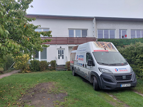 V říjnu 2025 zateplila Poctivá izolace strop stávajícího rodinného domu v Českých Budějovicích, který v rámci energetických úspor a probíhajícího dotačního titulu procházel kompletním zateplením. Patrový rodinný dům disponoval pultovou střechou s lepenkovou krytinou na prkenném podbití. Vstup do podstřeší byl střešním vikýřem, nemuseli jsme tedy montážní otvor vytvářet. Na stropě byla již ložená minerální skládaná vata nedostatečné výšky položená na škvárobetonu. Bylo tedy potřeba doplnit izolační vrstvu o 20 cm, jelikož souvislá výška izolace byla dána na 30 cm. Na celkovou plochu asi 120 m2 bylo tedy třeba zhotovit novou vrstvu izolace. Jako materiál byla zvolena čedičová minerální izolace Paroc BLT9 od společnosti Paroc, kterou náš profi tým proškolených pracovníků nafoukal na strop se stávající izolací ve vrstvě vysoké 20 cm. Vznikla tak nová plně funkční izolační vrstva bez jakýchkoliv tepelných mostů, která zajistí dokonalý tepelný komfort v domě po celý rok.