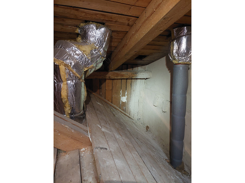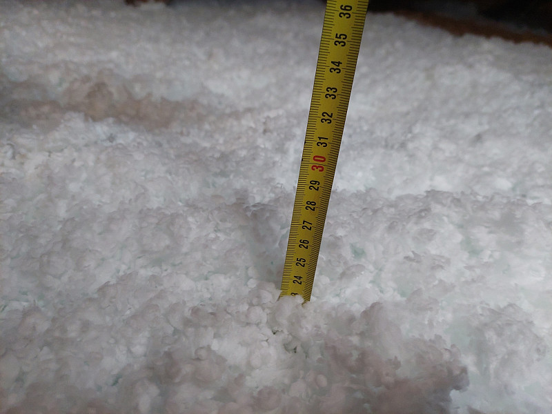 Ke konci října 2025 zateplila Poctivá izolace strop stávajícího rodinného domu v Jihlavě. Dům se sedlovou střechou a krytinou na prkenném podbití bylo potřeba zateplit z prostoru půdy, kde již byla stávající/původní izolace pod prkenným záklopem. Investor si připravil plochu pro nafoukání 20 cm vysoké vrstvy izolace a středovou revizní lávku. Na celkovou plochu asi 90 m2 bylo tedy třeba zhotovit novou vrstvu izolace. Jako materiál byla zvolena skelná minerální izolace Supafil loft PRO od společnosti Knauf, kterou náš profi tým proškolených pracovníků nafoukal na prkenný záklop ve vrstvě vysoké 20 cm a doplnil izolaci na konstrukční místa štítové zdi a pozednice. Vznikla tak nová plně funkční izolační vrstva bez jakýchkoliv tepelných mostů, která zajistí dokonalý tepelný komfort v domě po celý rok.