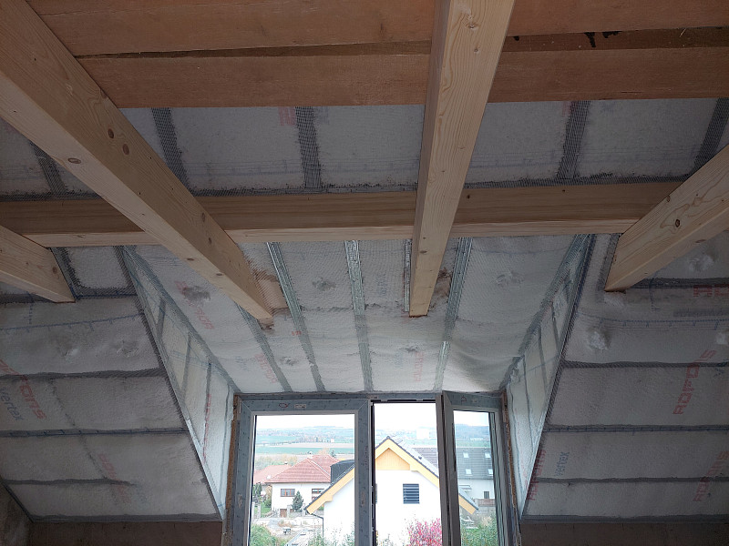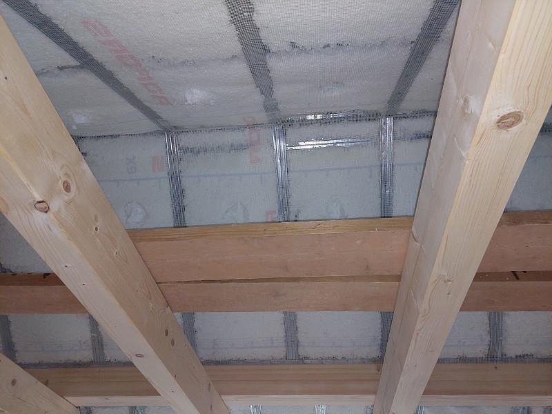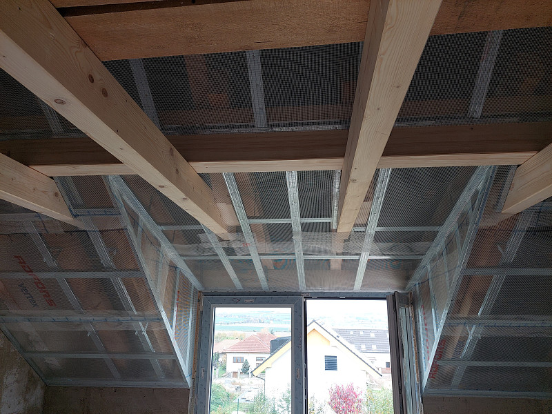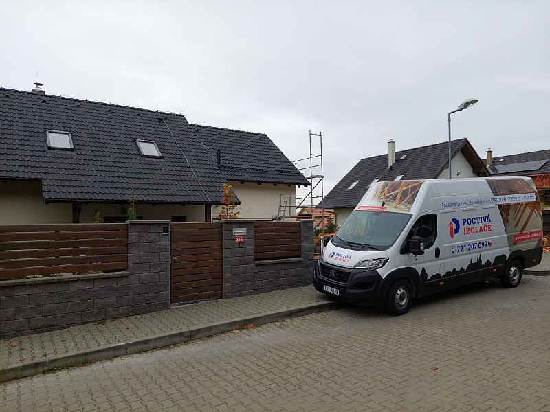 Ke konci října 2024 zateplila Poctivá izolace stávající rodinný dům v území Prahy-východ, kde se rozrůstá zástavba rodinných domů. Stavební společnost rekonstruovala rodinný dům se sedlovou střechou pro vytvoření další obytné místnosti nad garáží v přímém napojení na samotný dům. Střecha nad garáží se pomocí vyzdění a nové trámové konstrukce zvýšila k úrovni sedlové střechy obytného domu. Tím se vytvořila dutina stropu, kterou jsme vyfoukali tepelnou izolací zespodu, kde nám sádrokartonáři nechali část stropu nezakrytou deskami. Pomocí otvoru do alu-folie jsme mezi SDK a OSB desky nafoukali mezi trámoví tepelnou izolaci s vyšším hutněním. Nad garáží byl tedy strop zaizolován. V nově vytvořené obytné části nad garáží, kde byl připraven mezi trámovou konstrukcí rošt pro zaklopení sádrokartonovými deskami, bylo potřeba izolovat šikminy střechy. Pro lepší přístup a optickou kontrolu pro stavební společnost jsme na kovový rošt připevnili perlinku. Veškerou plochu šikmin až do hřebene jsme zaizolovali vrstvou izolace 30 cm s vyšším objemem na m3. Nyní už je tedy připraveno pro sádrokartonáře, který zaklopí SDK deskami s parotěsnou fólií. Jako materiál byla zvolena skelná minerální izolace Supafil loft od společnosti Knauf, kterou náš profi tým proškolených pracovníků nafoukal do dutiny stropu a do šikmin mezi krokve ve vrstvě dané projektem. Vznikla tak nová plně funkční izolační vrstva bez jakýchkoliv tepelných mostů, která zajistí dokonalý tepelný komfort v domě po celý rok.