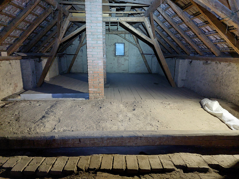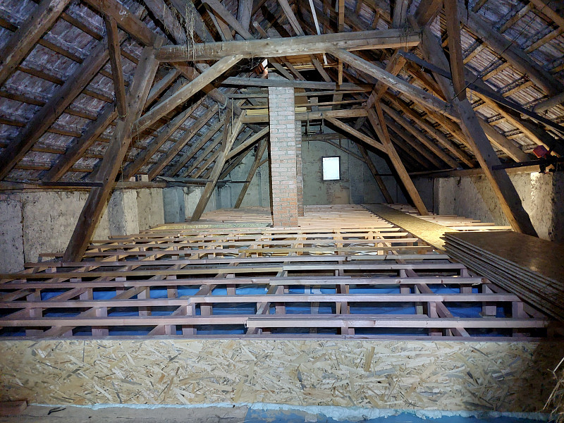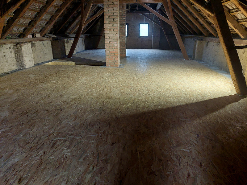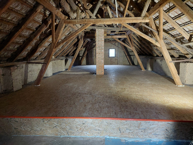 V první polovině října 2024 zateplila Poctivá izolace stávající rodinný dům ve Zbraslavicích. Rodinný dům se sedlovou střechou, trámovým krovem a vysokou nevytápěnou půdou se majitelka rozhodla pro vysoký únik tepla stropem zateplit. Jelikož byla půda prostorná a využívaná, bylo třeba zateplit tak, aby se tato funkce půdy zachovala i nadále. Na trámové stropy, kde část byla zaklopena pouze prkny, část půdovkami a v jedné části prostupovalo klenboví, se rozložila geotextílie a na ni řádně lepená parotěsná fólie. Následně se vystavěl dřevěný rošt do roviny a obednil se stropní vstup. Celá plocha nad obytnou vytápěnou plochou se zateplila pomocí minerální foukané izolace ve vrstvě 30 cm. Pomocí latí se vytvořila větraná mezera mezi samotnou izolací a záklopem z OSB desek pro odvětrávání izolace. Kolem komínů se na rošt připevnilo kovové voliérové pletivo a jelikož minerální izolace je nehořlavá, nebyly třeba kolem komínového tělesa dávat minerální desky. Na celkovou plochu asi 85 m2 byla jako izolační materiál zvolena skelná minerální izolace Supafil loft PRO od společnosti Knauf, kterou náš profi tým proškolených pracovníků nafoukal na trámový strop ve vrstvě vysoké 30 cm. Vznikla tak nová plně funkční izolační vrstva bez jakýchkoliv tepelných mostů, která zajistí dokonalý tepelný komfort v domě po celý rok.