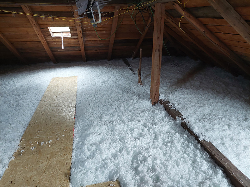 Ke konci května 2025 zateplila Poctivá izolace strop stávajícího rodinného domu v Krupíně. Pod sedlovou a valbovou střechou byla betonová podlaha půdy, kde náš profi tým proškolených pracovníků vystavěl revizní lávku od stropního výlezu, kde též vytvořili obednění, obizolovali potrubí nuceného větrání a následně na plochu asi 90 m2 nafoukali 30 cm vysokou vrstvu izolace. Jako materiál byla zvolena skelná minerální izolace Supafil loft PRO od společnosti Knauf. Vznikla tak nová plně funkční izolační vrstva bez jakýchkoliv tepelných mostů, která zajistí dokonalý tepelný komfort v domě po celý rok.