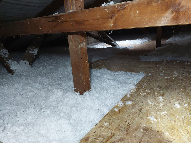 V dubnu 2025 zateplila Poctivá izolace stávající rodinný dům v Třeboni. Rodinný dům disponoval sedlovou střechou s nízkým sklonem a trámovou vazbou krovu. Podlaha půdy byla betonová a jelikož investor půdu nevyužívá, postačila postavit na podlahu pouze revizní lávka s přístupem ke komínu a střešnímu oknu. Následně náš profi tým proškolených pracovníků nafoukal na celou plochu půdy cca 110 m2 minerální foukanou skelnou izolaci Supafil loft PRO od společnosti Knauf ve vrstvě 30 cm. Vznikla tak nová plně funkční izolační vrstva bez jakýchkoliv tepelných mostů, která zajistí dokonalý tepelný komfort v domě po celý rok.