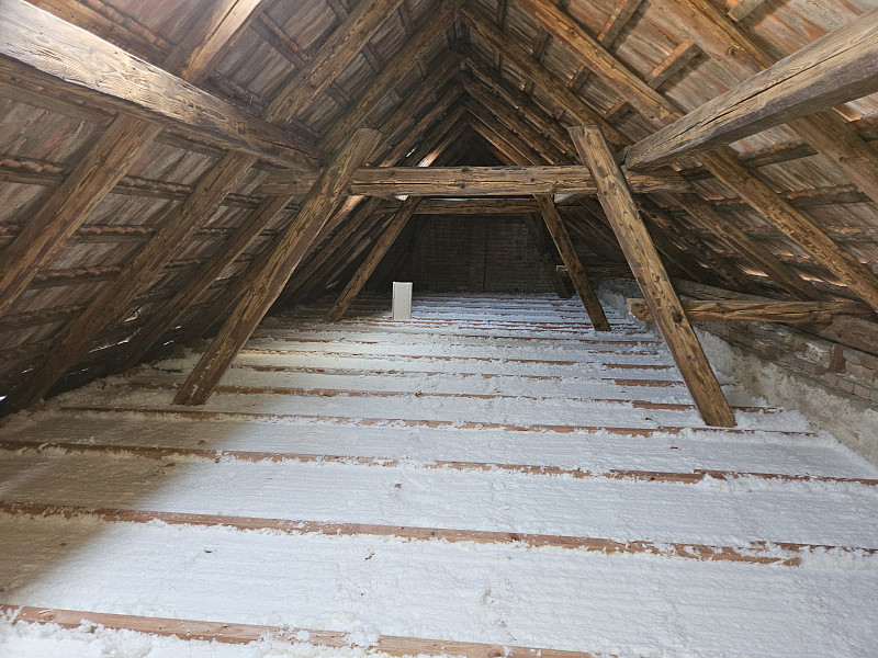 Při zateplování stávajícího rodinného domu se sedlovou střechou a trámovým krovem, s podlahou z půdovek a betonu u Znojma bylo třeba vytvořit novou izolační vrstvu s novou pochozí plochou. Jedině foukaná izolace dokáže efektivně vytvořit souvislou vrstvu zateplení stropu bez tepelných mostů. Díky Poctivé izolaci navíc budete mít zatepleno rychle, dokonale a hlavně poctivě. Jako materiál byla v případě zateplení rodinného domu u Znojma použita minerální skelná izolace Supafil loft PRO od společnosti Knauf. Supafil má mnoho skvělých výhod – nesléhává, je prodyšný, nehořlavý, ekologický a má nízkou objemovou hmotnost. Poctivá izolace má ve své nabídce celkem 5 druhů izolačních materiálů. Krom minerálních skelných izolací jsou to rovněž minerální čedičové izolace, celulózové neboli papírové izolace, dřevovláknité a polystyrénové izolace. S výběrem toho pravého izolačního materiálu pro Váš typ konstrukce Vám v Poctivé izolace rádi poradíme a pomůžeme. Máme za sebou již stovky zakázek a řadu let zkušeností, o které se s Vámi rádi podělíme. Poptejte si zateplení stropu či střechy i Vy.