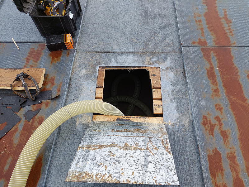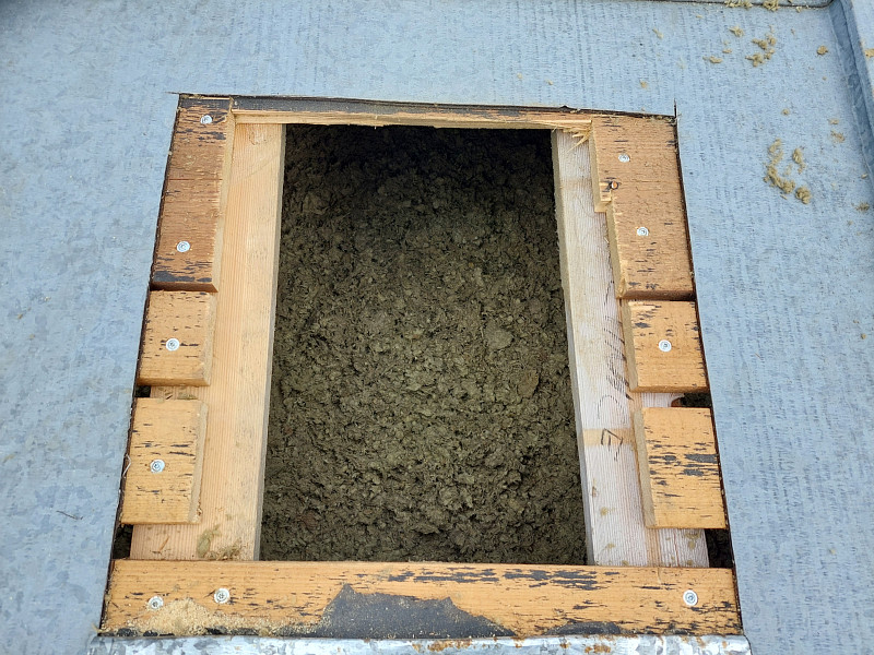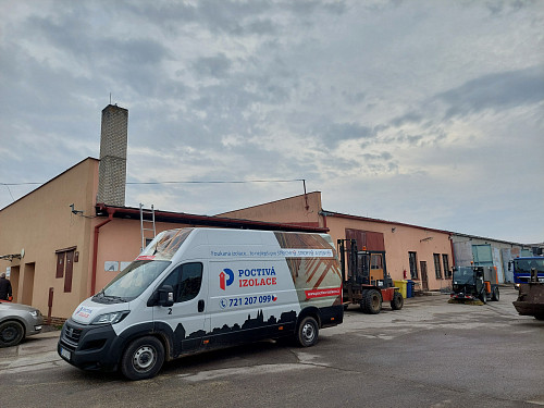 V březnu 2025 zateplila Poctivá izolace strop stávající nízké budovy se zázemím. Budova disponovala pultovou střechou s plechovou krytinou na prkenném podbití a dřevěným krovem. Nejprve jsme do plechové krytiny vytvořili montážní otvor/vstup do podstřešního prostoru, kdy jsme řízli krytinu a prkenné bednění. Tímto otvorem jsme nafoukali 25 cm vysokou izolační vrstvu a následně za sebou otvor uzavřeli pomocí bitumenové pásky. Po nás na střechu nastoupili střechaři, aby položili novou PVC krytinu s odvětrávacími komponenty. Na celkovou plochu asi 140 m2 jsme tedy zhotovili zcela novou vrstvu izolace. Jako materiál byla zvolena čedičová minerální izolace Paroc BLT9 od společnosti Paroc. Vznikla tak nová plně funkční izolační vrstva bez jakýchkoliv tepelných mostů, která zajistí dokonalý tepelný komfort v budově po celý rok.