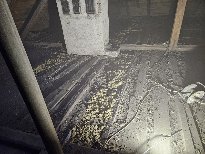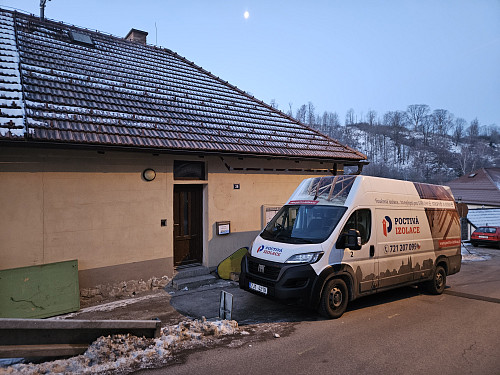 Poctivá izolace zateplila strop stávajícího zděného obecního domu v Malém Beranově. Dům v rekonstrukci pro občanské využití disponoval sedlovou střechou s krytinou z tašek na latích a celoplošným prkenným bedněním. Na trámovém stropě byl prkenný záklop, kde stavebník připravil montážní otvory pro vyplnění dutiny mezi trámy foukanou izolací. Aby nevznikl tepelný most, kdy trámy nejsou shora ani zdola v izolaci, bude se pod stropními trámy dávat do sníženého podhledu doplňující vrstva izolace včetně parotěsné folie z interiéru. Na celkovou plochu asi 61 m2 bylo tedy třeba zhotovit nahutněnou izolační vrstvu mezi trámy. Jako materiál byla zvolena minerální čedičová izolace Paroc BLT9, kterou náš profi tým proškolených pracovníků nafoukal mezi trámové dutiny ve vrstvě 21 cm. Vznikla tak nová plně funkční izolační vrstva bez jakýchkoliv tepelných mostů po doplnění izolace i pod trámy, která zajistí dokonalý tepelný komfort v domě po celý rok.