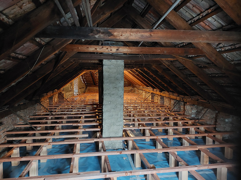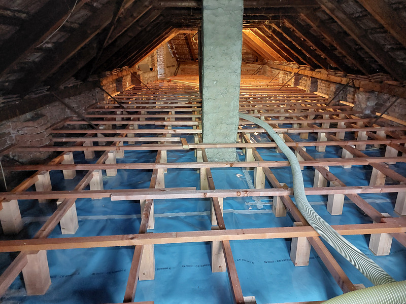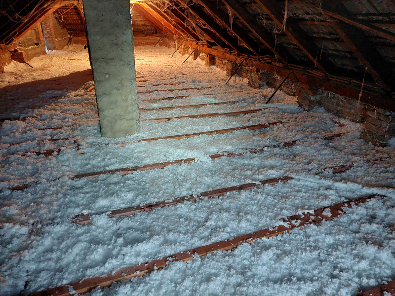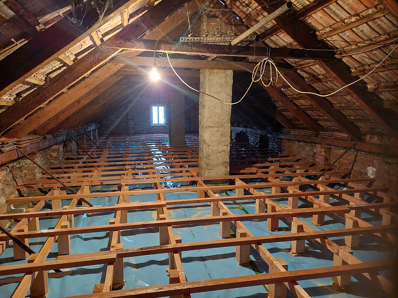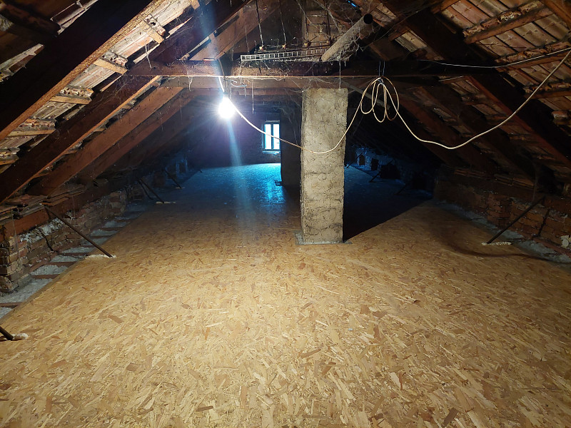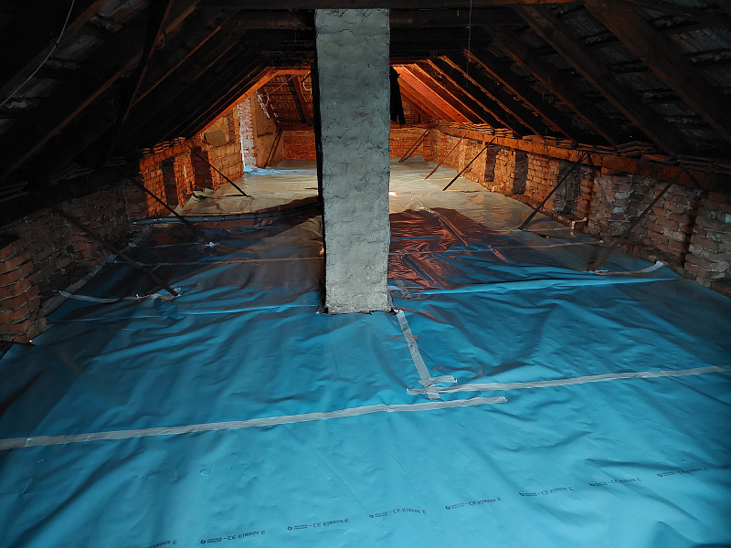 V lednu 2025 zateplila Poctivá izolace stávající rodinný dům v Libici nad Cidlinou. Dům s obytným přízemím a krásnou prostornou půdou disponoval sedlovou střechou a krytinou z tašek. Na trámový strop s prkenným záklopem o ploše cca 100 m2 náš profi tým proškolených pracovníků rozložil parotěsnou fólii s řádným přelepem u konstrukcí, na kterou vystavěl dřevěný rošt, do kterého nafoukal 30cm vrstvu izolace. Pomocí latí na roštu se vytvořila větraná mezera mezi izolací a následným záklopem z OSB desek tloušťky 18 mm pro odvětrávání vlhkosti z izolace. V této souvislosti odvětrávání vlhkosti se nezaklápěla podlaha cca 0,5m od pozednice. Zde se na rošt připevnilo kovové voliérové pletivo, tak jako kolem komína a u schůdku předvstupu půdy. Na nerovné podlaze u vstupu bylo potřeba před položením parotěsné fólie použít geotextílii. Jako materiál byla zvolena skelná minerální izolace Supafil loft od společnosti Knauf. Vznikla tak nová plně funkční izolační vrstva bez jakýchkoliv tepelných mostů, která zajistí dokonalý tepelný komfort v domě po celý rok.