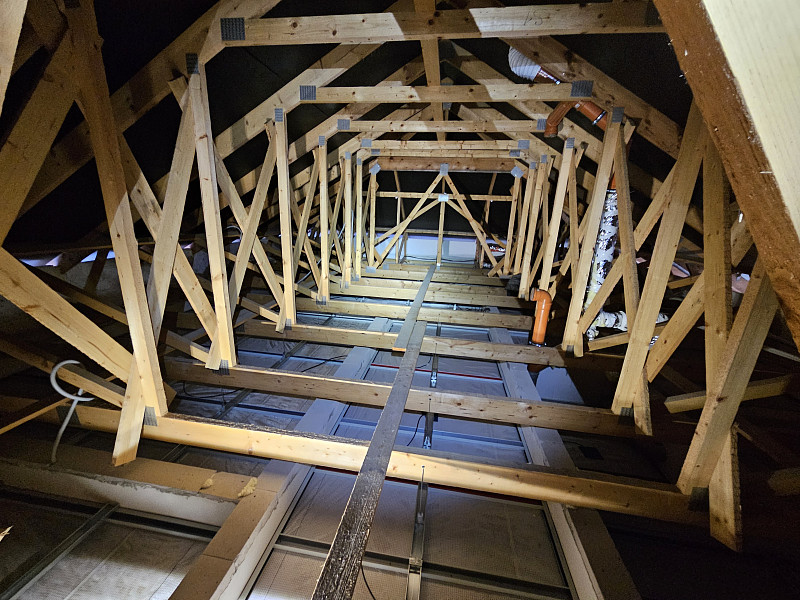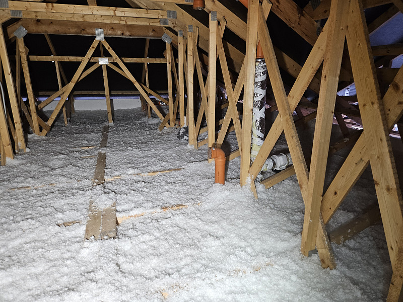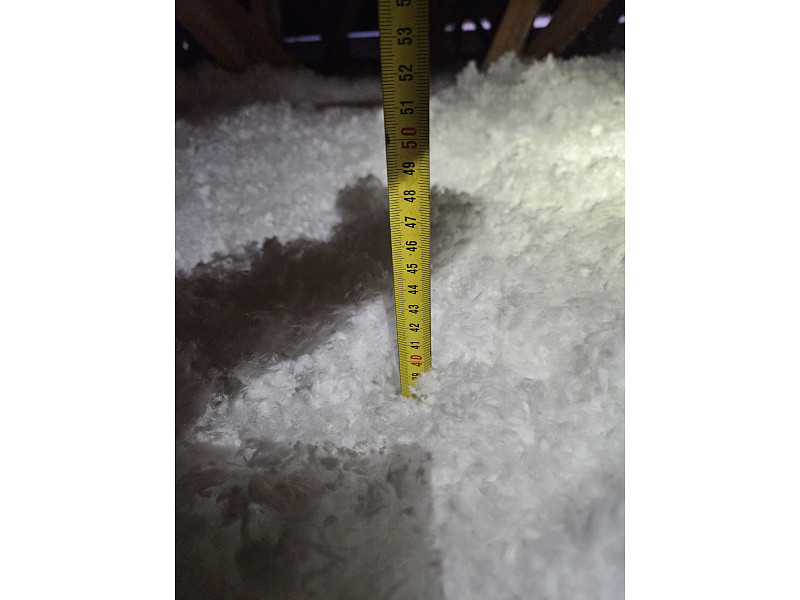 Začátkem prosince 2025 zateplila Poctivá izolace strop novostavby bungalovu ve Starém Hraběcím. Bungalov s valbovou střechou s plechovou krytinou a krovem ze sbíjeného vazníku již bylo potřeba zateplit nad sádrokartonovým stropem svěšeným pod vazníkem. Na celkovou plochu asi 100 m2 bylo tedy třeba zhotovit dostatečnou vrstvu izolace. Jako materiál byla zvolena skelná minerální izolace Ursa Pure Floc od společnosti Ursa, kterou náš profi tým proškolených pracovníků nafoukal na sádrokartonový strop ve vrstvě vysoké 36 cm. Vznikla tak nová plně funkční izolační vrstva bez jakýchkoliv tepelných mostů, která zajistí dokonalý tepelný komfort v domě po celý rok.