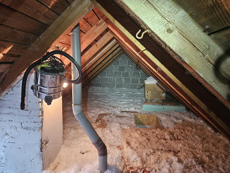 V prosinci 2025 zateplila Poctivá izolace strop stávajícího zděného rodinného domu v Českých Libchavách. Dům se sedlovou střechou, krytinou z falcovaného plechu a trámovým stropem bylo třeba zateplit z půdního prostoru, kde již firma zajišťující opatření domu pro energetické úspory vystavěla rošt na parotěsné folii. Na celkovou plochu asi 73 m2 bylo tedy třeba zhotovit novou vrstvu izolace. Jako materiál byla zvolena skelná minerální izolace Ursa Pure Floc od společnosti Ursa, kterou náš profi tým proškolených pracovníků nafoukal do roštu ve vrstvě vysoké 30 cm. Vznikla tak nová plně funkční izolační vrstva bez jakýchkoliv tepelných mostů, která zajistí dokonalý tepelný komfort v domě po celý rok.