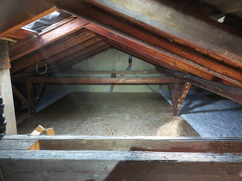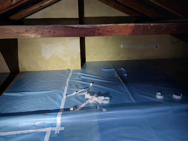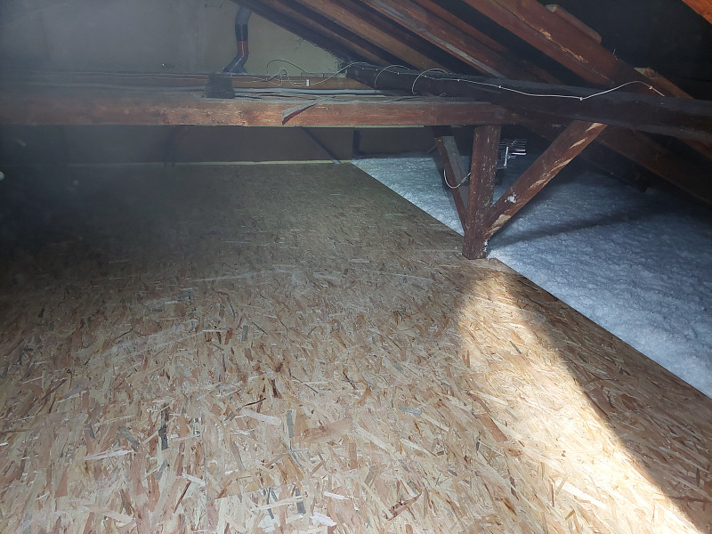 Na začátku září 2024 zateplila Poctivá izolace stávající rodinný dům v Lužné. Rodinný dům se investor rozhodl zateplit po všech stránkách včetně využití solárního energetického zdroje a zateplení obálky domu. Jako poslední článek pro úspory domu bylo tedy potřeba zateplit strop rodinného domu, aby se vytvořené teplo v interiéru, jelikož teplý vzduch je lehčí než studený, nevytrácelo z vytápěných místností stropem ven. Patrový rodinný dům s novou sedlovou střechou a betonovou podlahou půdy se majitel rozhodl zateplit v půdním prostoru tak, aby půda byla dále využívána a mohl podstřešní prostor kontrolovat či zde odkládat sezónní věci. Nejdříve se tedy zvýšil rám stropního výlezu se stahovacími schůdky, středem se po položení parotěsné fólie vystavěl dřevěný rošt, do kterého se nafoukala minerální izolace, pomocí latí se vytvořila odvětrávací mezera mezi izolací a následným záklopem z OSB desek. V místech, kde nebylo fasádní EPS vytaženo až ke střeše se nafoukala izolace přes pozednici s náběhem až do podbití, aby se zamezilo tepelným mostům. Jako materiál byla zvolena skelná minerální izolace Ursa Pure Floc od společnosti Ursa, kterou náš profi tým proškolených pracovníků nafoukal na betonovou podlahu půdy ve vrstvě vysoké 30 cm. Vznikla tak nová plně funkční izolační vrstva bez jakýchkoliv tepelných mostů, která zajistí dokonalý tepelný komfort v domě po celý rok.