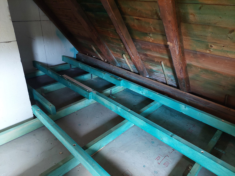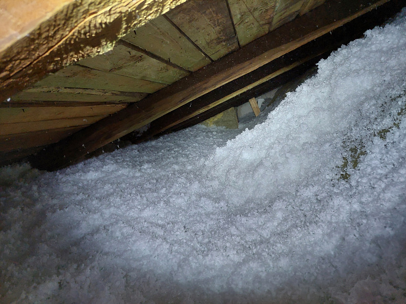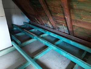 V druhé půli července 2025 zateplila Poctivá izolace strop stávajícího rodinného domu v Koberovech. Rodinný dům disponoval sedlovou střechou, kde až k hřebeni byla v části půdy vybudována obytná část domu. Na zbylé ploše půdy, kde podlaha byla betonová, se investor rozhodl zateplit tuto část a to tak, že pomocí ošetřených trámků vystavěl rošt a na obezdívku k obytné části položil rolovanou vatu. Náš profi tým proškolených pracovníků na celkovou plochu asi 35 m2 nafoukal 30 cm vysokou izolační vrstvu jak na vodorovnou část plochy půdy s roštem, tak i na šikmou obezdívku s vatou, kde vytvořil souvislou izolační vrstvu. Jako materiál byla zvolena skelná minerální izolace Supafil loft od společnosti Knauf. Vznikla tak nová plně funkční izolační vrstva bez jakýchkoliv tepelných mostů, která zajistí dokonalý tepelný komfort v domě po celý rok.