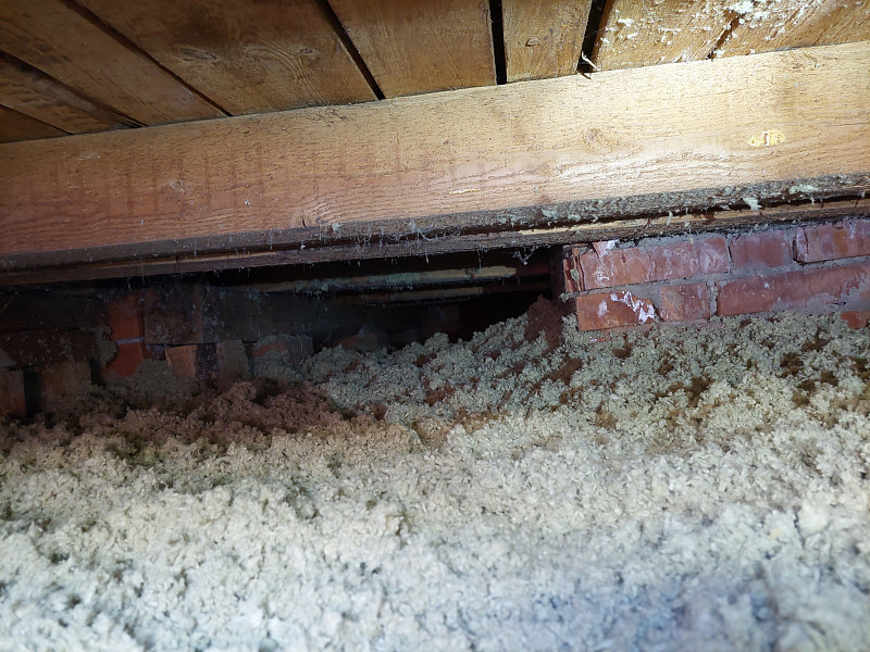 V srpnu 2023 zateplila Poctivá izolace strop stávajícího patrového rodinného domu v Hradci Králové. Rodinný dům disponoval pultovou střechou s lepenkovou krytinou na prkenném podbití. Jelikož se jedná o střechu plochou s dřevěným krovem, kde je nízký odvětrávací prostor, řešíme nejdříve, jak je takový prostor odvětráván. Zda jsou již v atice zabudovány nasávací a odvětrávací mřížky jako u tohoto domu, či bude nutné střechu osadit odvětrávacími komponenty jako jsou hlavice a komínky. Zde tedy byly otvory v atice funkční, proto náš profi tým proškolených pracovníků mohl vytvořit do lepenkové krytiny otvor 40x40cm pro průlez do podstřeší, nafoukat na stávající 5 cm vysokou původní izolaci další 32 cm vysokou vrstvu izolace a následně po sobě prkenné bednění a lepenkovou krytinu uzavřít. Jako materiál byla zvolena minerální čedičová izolace z kamenné vlny Granrock Super, kterou jsme nafoukali na Miako strop v ploše 80 m2. Vznikla tak nová plně funkční izolační vrstva bez jakýchkoliv tepelných mostů, která zajistí dokonalý tepelný komfort v domě po celý rok.