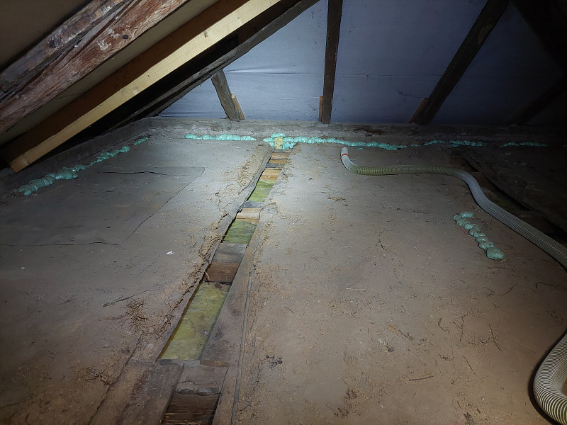 Na začátku června 2025 zateplila Poctivá izolace strop stávajícího patrového rodinného domu v Hostouni. Rodinný dům procházel kompletní rekonstrukcí pro energetické úspory objektu. Střecha dostala „nový kabát“, osadili se nové výplně otvorů a nyní se investor jako další fázi rozhodl zateplit strop mezi vytápěnou obytnou částí domu a půdním nevytápěným prostorem. Pod novou valbovou střechou s krytinou z taškoplechu byla podlaha půdy trámové konstrukce, kde dle propočtu projektanta bylo potřeba vyplnit trámovou dutinu a následně i horní záklop na trámech foukanou izolací. Na celkovou plochu asi 55 m2 náš profi tým proškolených pracovníků nafoukal novou vrstvu izolace. Jako materiál byla zvolena skelná minerální izolace Ursa Pure Floc od společnosti Ursa. Vznikla tak nová plně funkční izolační vrstva bez jakýchkoliv tepelných mostů, která zajistí dokonalý tepelný komfort v domě po celý rok.